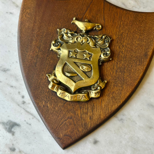 Vintage Kappa Psi Fraternity Brass Crest Plaque on Shield Backing
