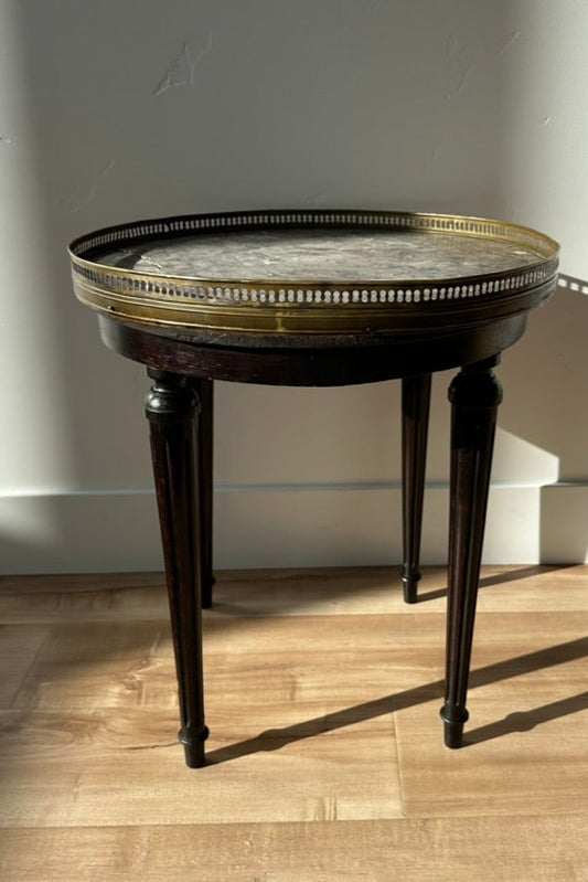 Antique French Louis XVI-Style Guéridon Table with Marble Top and Brass Gallery
