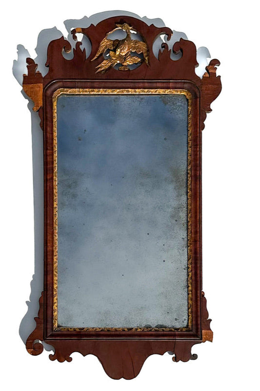 Early 19th Century Federal-Chippendale Style Wall Mirror with Mahogany Veneer and Gilt Details