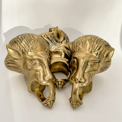 Antique Late 19th-Early 20th Century Brass Lion Head Foot Rail Supports