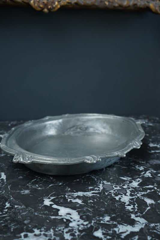 Antique European Pewter Dish with Crown & Fleur-de-Lis Hallmark