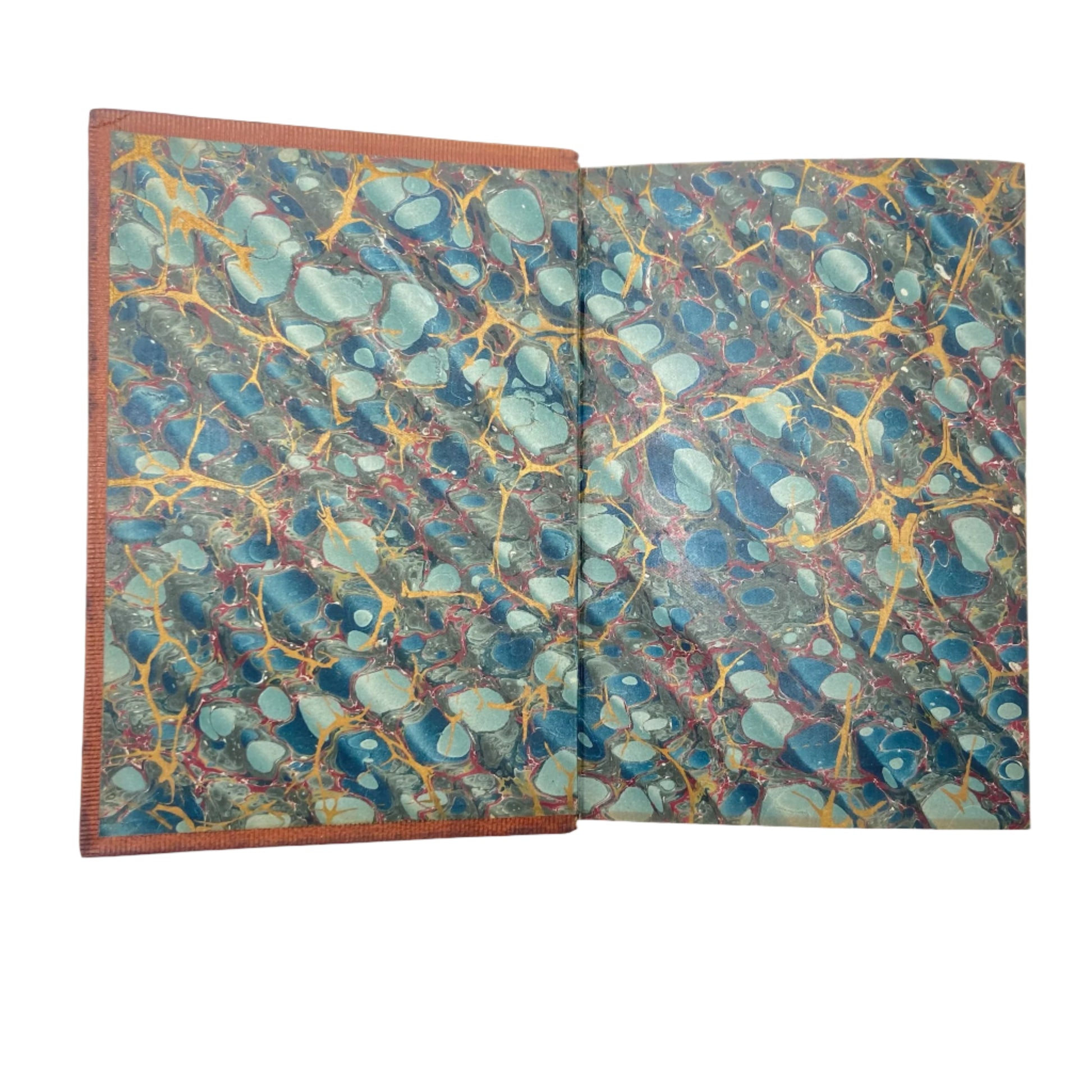 One of the most appealing features of this volume is its distinguished binding, which suggests it was produced with an eye toward longevity and presentation. The binding is crafted in a warm brown leather, with gilt tooling adorning the spine and raised bands that lend the volume an air of elegance and academic prestige. The front cover bears intricate detailing, and the marbled endpapers add a subtle decorative touch, all of which point to a high-quality, purposefully designed edition intended for serious collectors or as a prized academic resource.