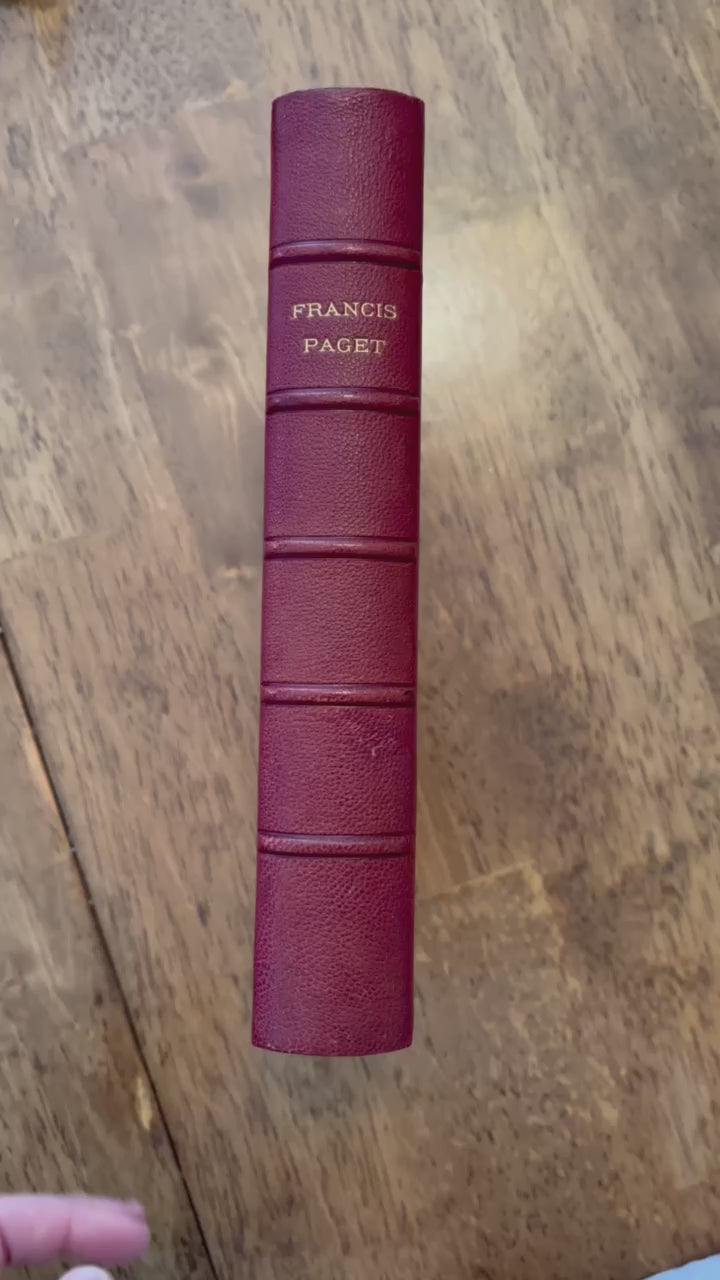 This particular copy is bound in a striking custom half crimson Morocco leather binding with raised bands and gilt lettering on the spine, paired with matching deep red cloth boards and corners. The binding is not only visually impressive but would have likely been commissioned to honor the significance of the work, giving it a strong presence on any bookshelf. The text block edges have naturally aged to a warm yellow tone, with scattered foxing visible, particularly on the fore edges and within the preliminary pages, adding to the authentic antique character. Internally, the book is firm, with moderate but expected foxing throughout, especially around the frontispiece portrait. Structurally, the volume remains strong, with minimal shelfwear to the binding, bright gilt on the spine, and clean cloth boards. Overall, this is a handsomely preserved and finely bound biography that stands as both a historical document and a collectible piece—a wonderful snapshot of England’s religious and academic world at the dawn of the 20th century.