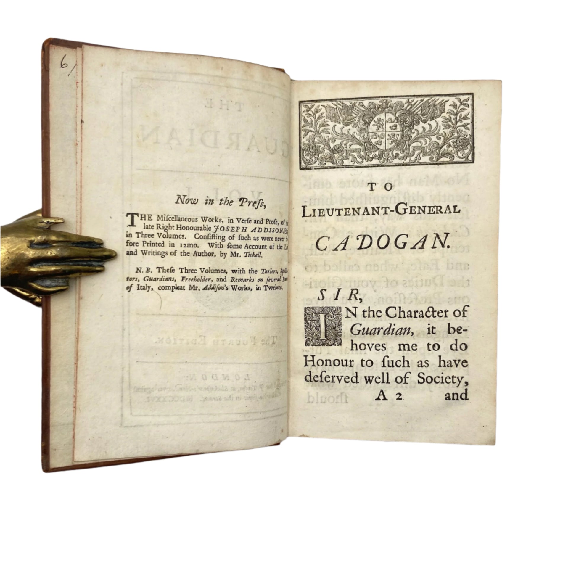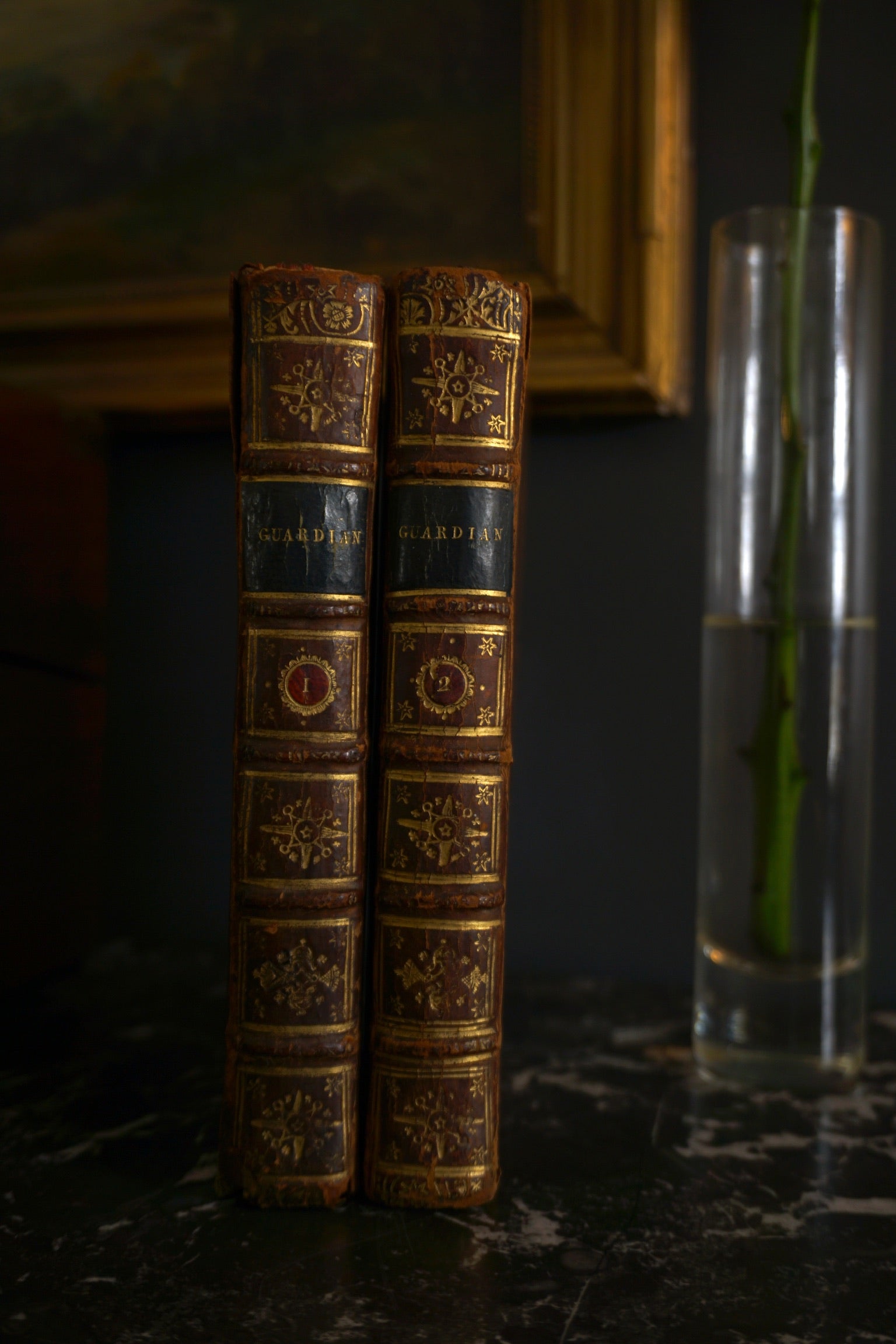 2 Volumes 1726 "The Guardian" Brown Full Leather Books