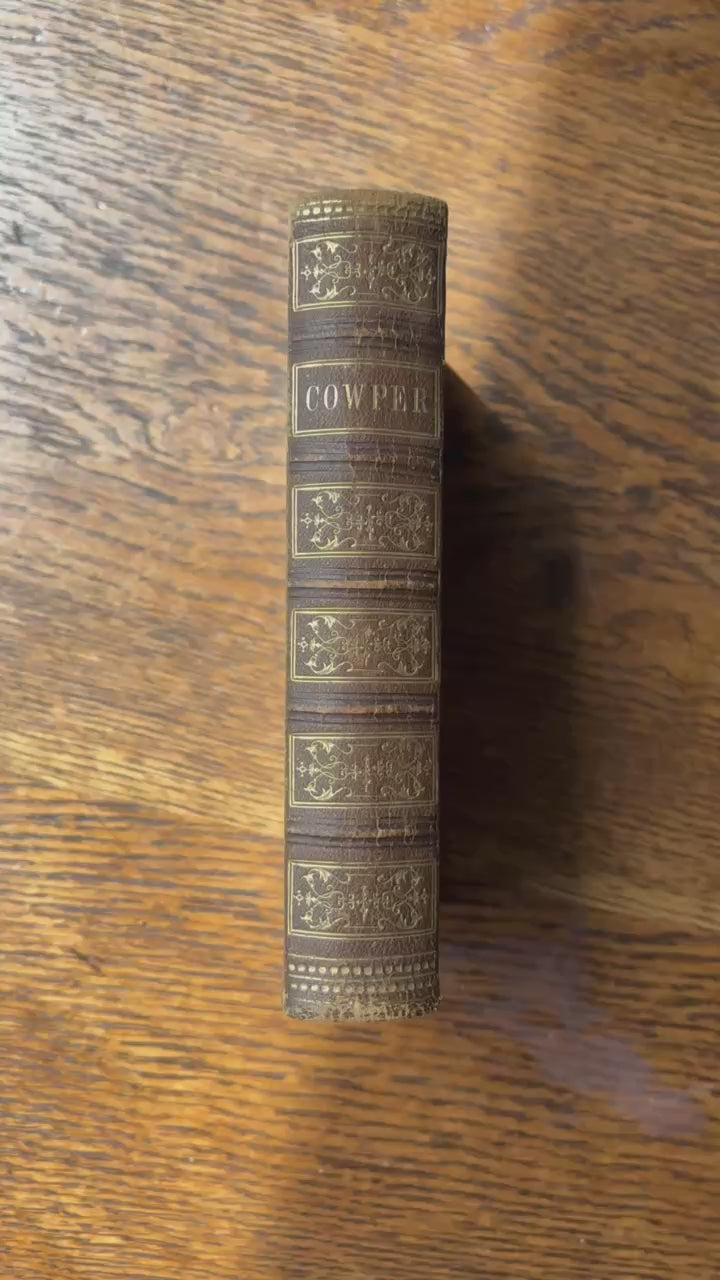 This beautiful mid Victorian edition of The Complete Poetical Works of William Cowper was published by Gall and Inglis in Edinburgh around 1853 and is a striking example of nineteenth century gift book craftsmanship. Bound in rich green morocco leather with an intricate gilt tooled cover and spine, raised bands, decorative gilt compartments, and bright gilt page edges, it has all the hallmarks of a high quality presentation volume. Inside are Cowper’s full collected poems, including The Task, John Gilpin, Tirocinium, and the Olney Hymns, accompanied by eight finely engraved steel plates that bring the dramatic and serene moments of his poetry to life. A period inscription dated December 12, 1853 and a later ownership note from Salisbury in 1946 add a wonderful sense of provenance and personality. This is the kind of decorative antique book that appeals to both literature lovers and collectors who want a statement piece for a library, bookshelf, or desk. Cowper’s writing bridges the elegance of Georgian verse and the emotional depth of the early Romantic period, making this volume as meaningful to read as it is beautiful to display.
