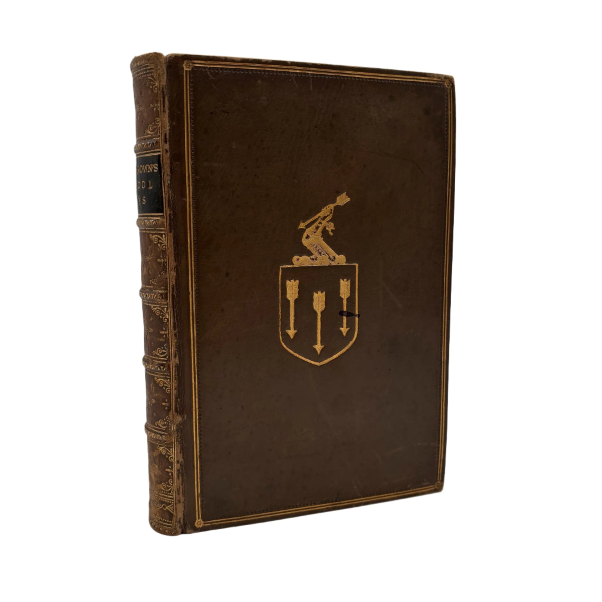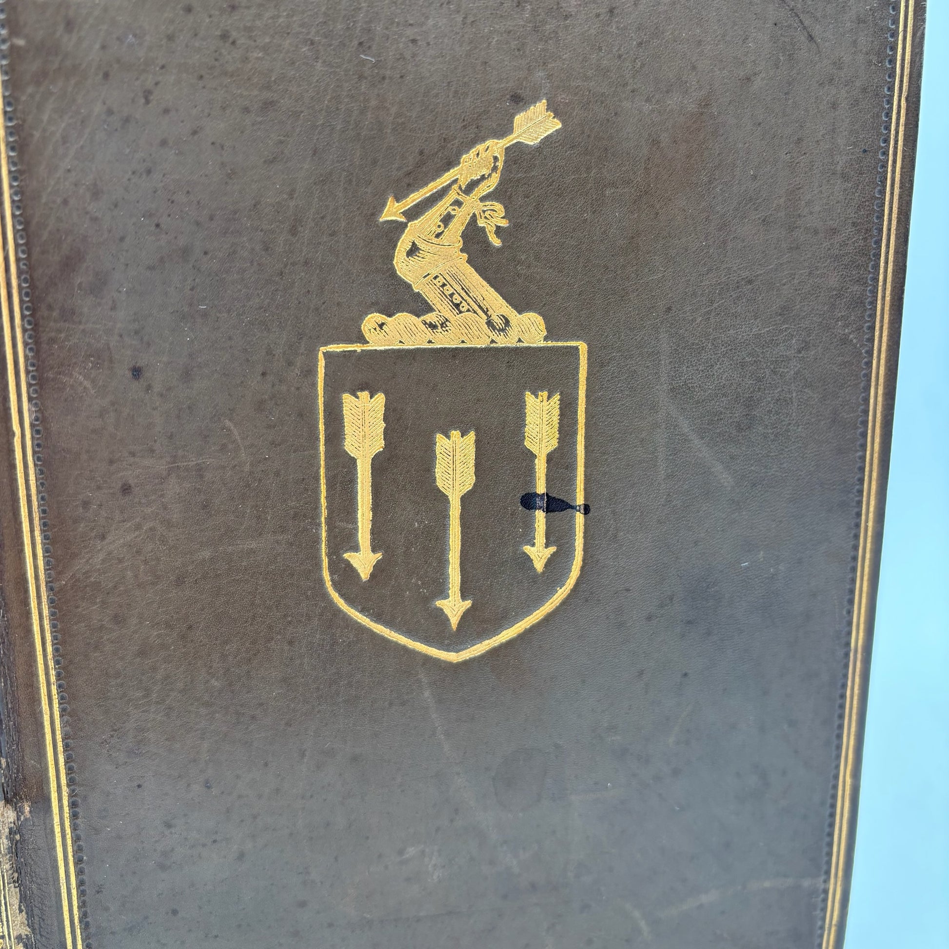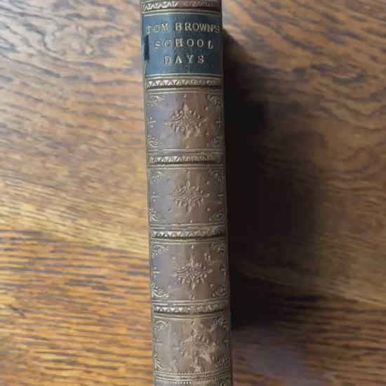 This 1894 Macmillan edition of Tom Brown’s School Days is a beautifully preserved example of Victorian fiction and an exceptional decorative book for collectors who love character, history, and fine bindings. Presented in a full calf prize binding from the School of King Henry VIII in Coventry, it features a rich brown leather cover with raised bands, intricate gilt tooling, and a crisp black leather title label. The front board displays the school’s gilt armorial crest of three arrows and a knight’s arm, linking this copy directly to a real English school tradition. Inside, the original marbled endpapers and marbled page edges add striking color and movement, and the matching prize plate records that the book was awarded to a student named Bliss Burbidge. This edition is illustrated by Arthur Hughes and Sydney Prior Hall, bringing to life the most memorable scenes of the classic story. Written by Thomas Hughes, Tom Brown’s School Days follows the adventures of a young boy at Rugby School and explores friendship, courage, and moral growth in a way that shaped Victorian ideas about education. This copy is both a collectible literary classic and a beautifully made display piece that fits effortlessly into English country house inspired decor, libraries, and vintage book stacks.