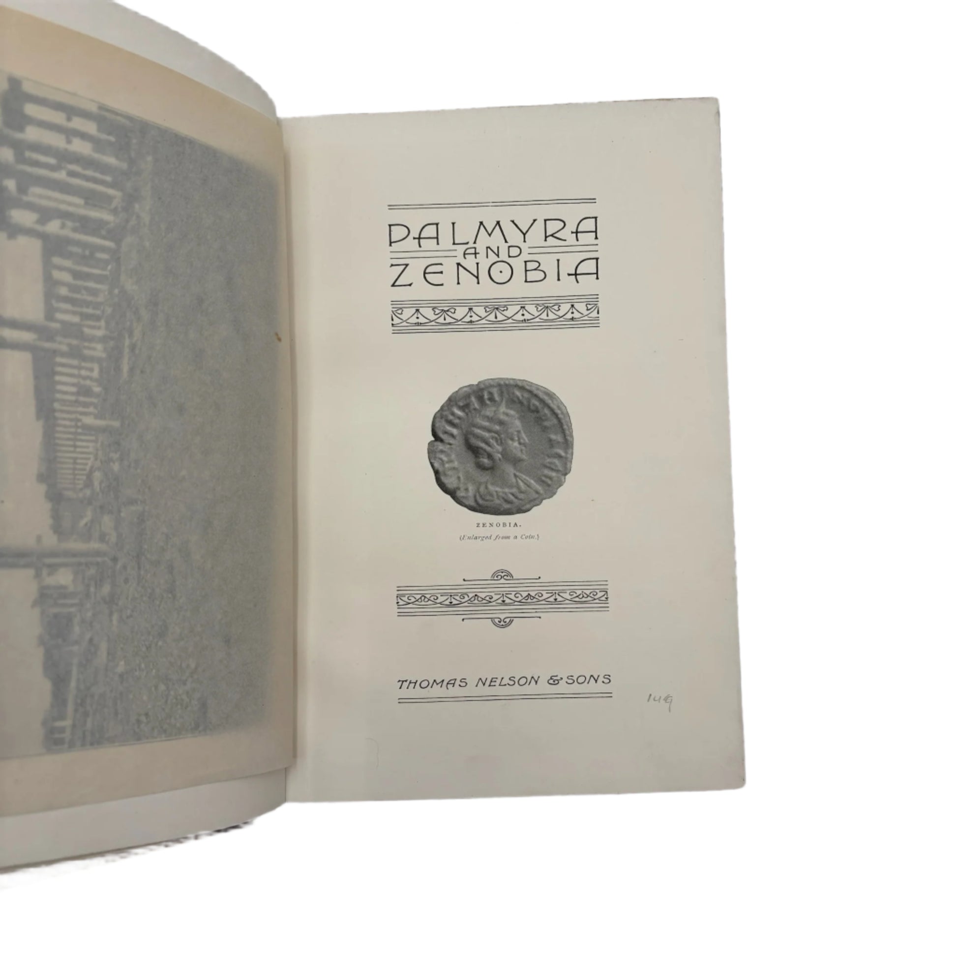 This antique 1895 history book Palmyra and Zenobia by William Wright is a beautifully presented Victorian volume that blends fascinating historical storytelling with an elegant decorative binding. Published by Thomas Nelson and Sons, the book explores the ancient Syrian city of Palmyra and the life of its remarkable queen, Zenobia, through engaging travel narrative, archaeological observations, and vivid illustrations of the ruins. This edition is made especially desirable by its full polished calf prize binding from The King’s School in Chester. The front board displays a bold gilt royal arms crest featuring the lion and unicorn, a detail that instantly elevates the book as a display piece. The spine is richly gilt with raised bands, ornate floral tooling, and a red morocco title label that remains clear and attractive. Inside, the book features marbled endpapers and a marbled fore edge, both in deep, dramatic colors that complement the warm calf leather. Illustrated plates of Palmyra’s ruins provide striking visual interest throughout the text. This volume is ideal for collectors, history lovers, and anyone looking to add a refined antique leather book to their home library or decor.