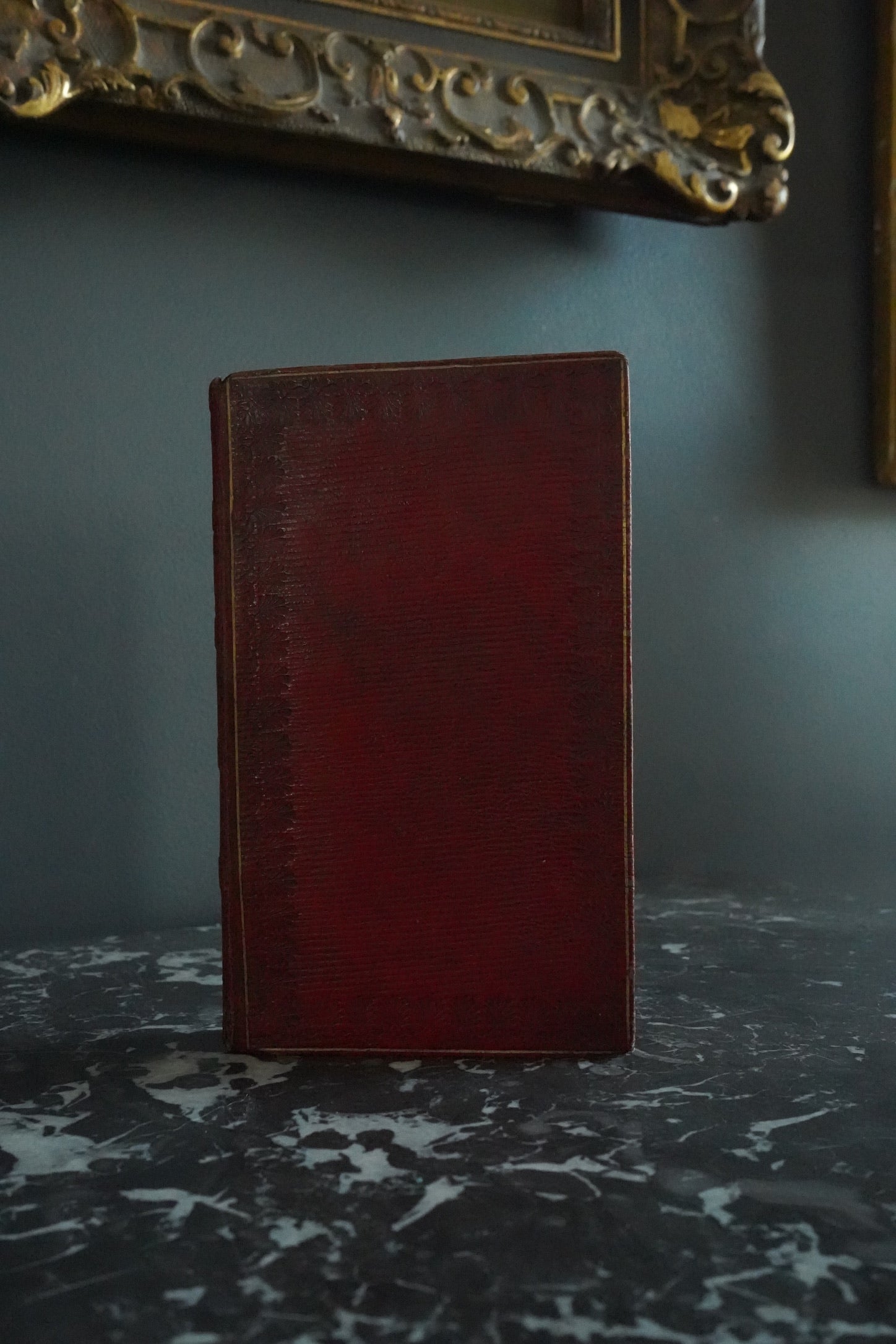 In remarkable condition for a book over 220 years old. The red leather is still rich and bold, with only light wear to the corners and edges. The gilt tooling is crisp and eye-catching, especially on the spine. Gilt page edges are clean and bright. Inside, the pages are complete and readable, with some expected age toning and foxing to the front pages. The binding is tight, the boards are square, and the engraved plates are sharp and full of character. A gorgeous, display-worthy example of Georgian bookbinding and literary charm.
