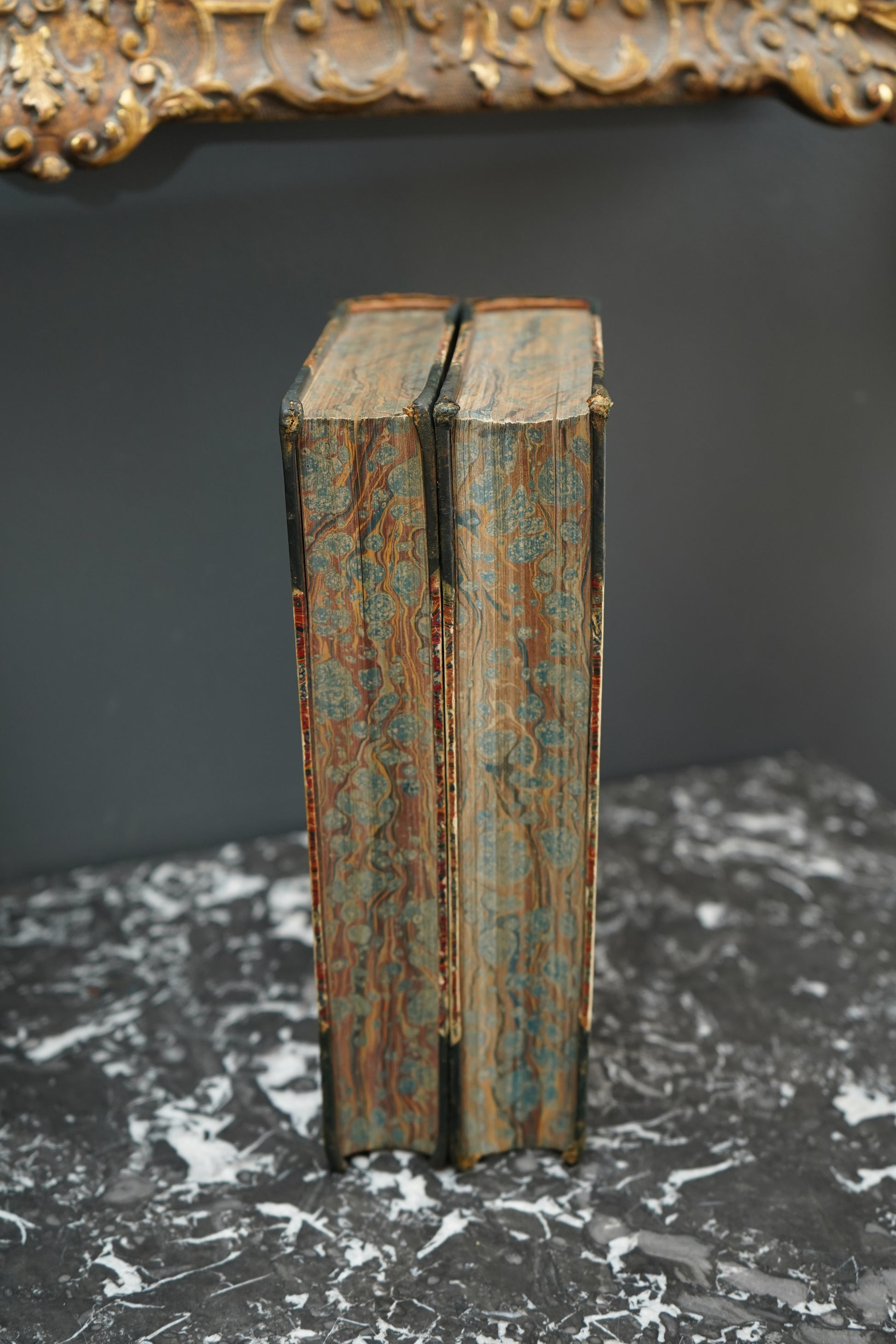 This two-volume set is in good antique condition with handsome half-leather bindings, richly gilt spines, and marbled boards and edges that retain much of their original vibrancy. The bindings remain secure and the books are structurally sound. There is expected rubbing and wear to the leather, particularly along the spine ends, joints, and corners, with some chipping and surface loss at the headcaps. The marbled boards show light scuffing and marks from age and handling, but the decorative effect is still striking. Internally, the pages are generally clean and legible with some age toning and scattered foxing, most noticeable on the prelims. No pages appear to be missing, though as with all periodical volumes, they are sold as-is. A period bookseller’s label from Hayward of Croydon is present on the pastedown of each volume, adding provenance.