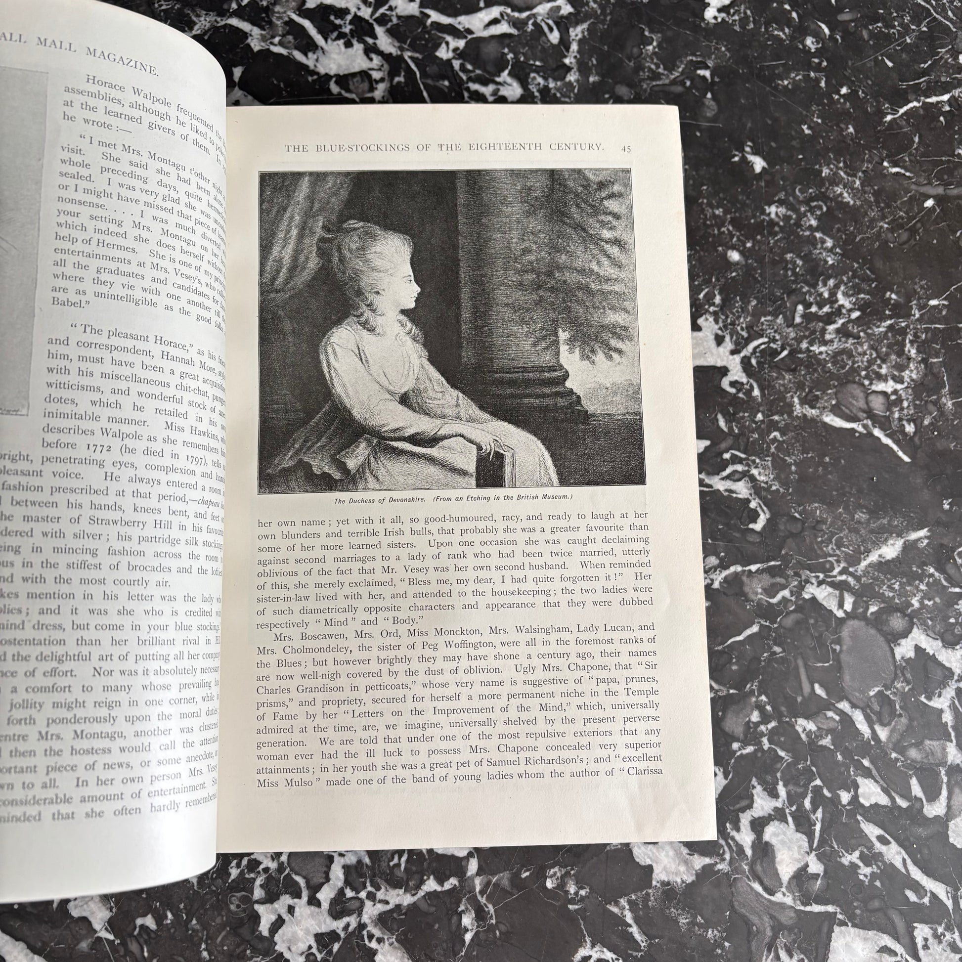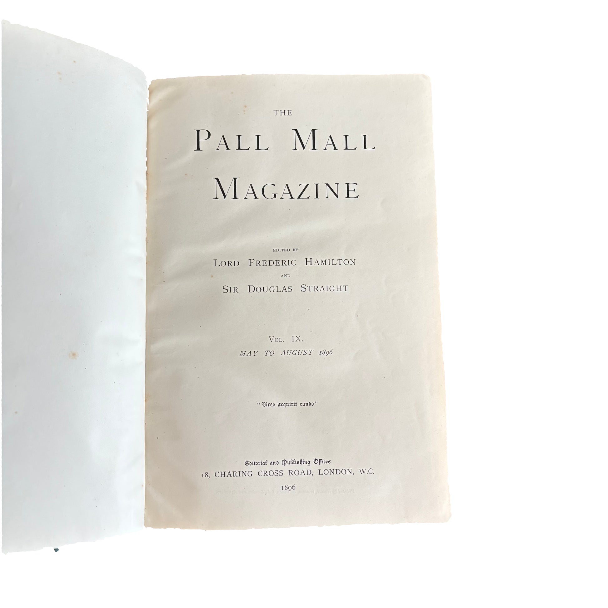 This handsome two-volume set of The Pall Mall Magazine captures the spirit of Victorian literary and artistic culture. Published in London in 1895 and 1896, these bound editions (Volumes VII and IX) feature a rich mix of serialized fiction, essays, travel narratives, poetry, and finely executed illustrations. Edited by Lord Frederic Hamilton and Sir Douglas Straight, The Pall Mall Magazine was one of the leading illustrated journals of the late 19th century, rivaling The Strand in quality and readership. Its pages carried contributions from celebrated authors, along with essays on science, exploration, and art that reflected the intellectual curiosity of the Victorian age.