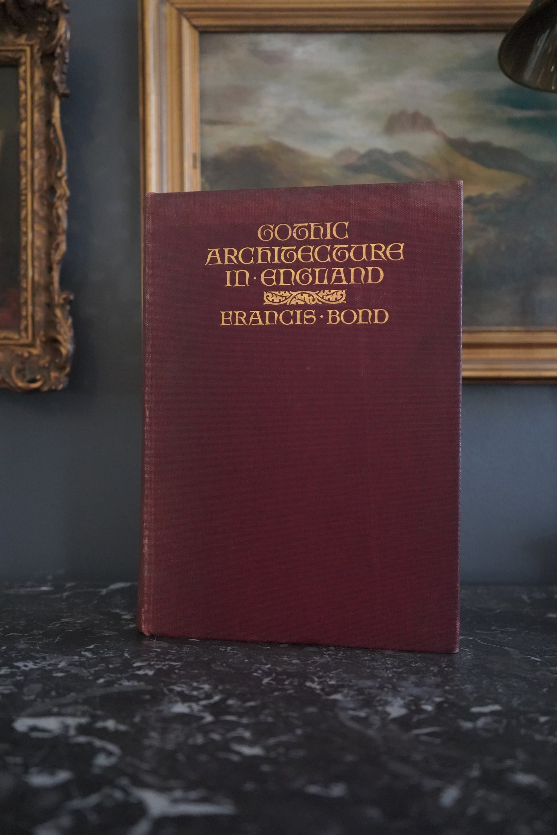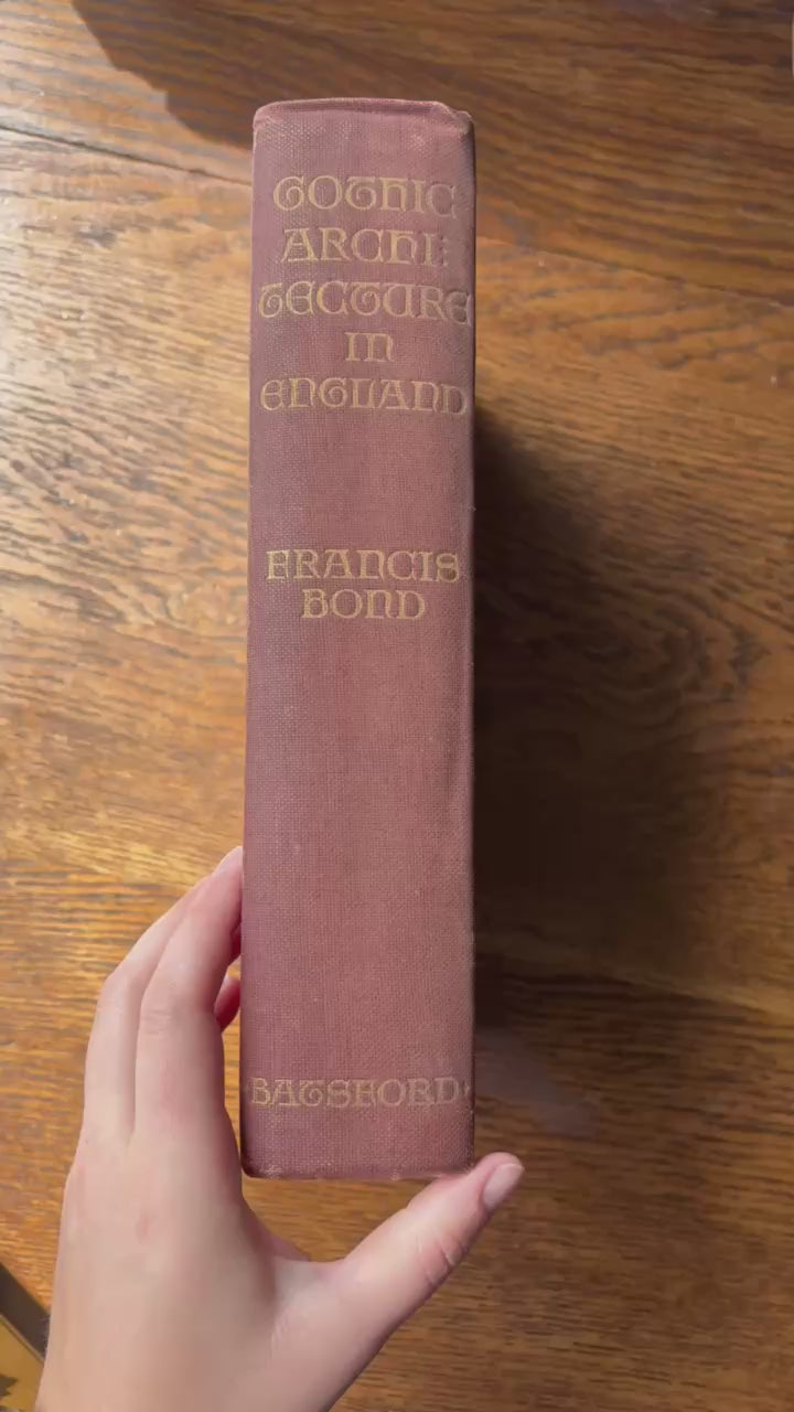 This 1912 reimpression of Gothic Architecture in England by Francis Bond is a richly illustrated architectural history book that traces the development of English Gothic design from the Norman Conquest through the Dissolution of the Monasteries. Originally published in 1905 during the height of the Gothic Revival, Bond’s work was created to provide both scholars and the general public with a comprehensive reference. With over 1,200 illustrations including photographs, architectural drawings, tracery details, and cathedral views, this volume explores each phase of Gothic architecture in England from the massive round arches of the Norman style to the pointed arches of the Early English, the elaborate tracery of the Decorated period, and the soaring fan vaults of the Perpendicular style. The book is bound in a deep maroon cloth with gilt lettering on the spine and cover, reflecting the quality binding of B. T. Batsford publications. This copy includes a dated inscription from 1914, adding a personal touch of provenance and historical character. Both an important architectural reference and a striking decorative volume, this book is ideal for collectors, design enthusiasts, and anyone who admires the grandeur of medieval cathedrals.
