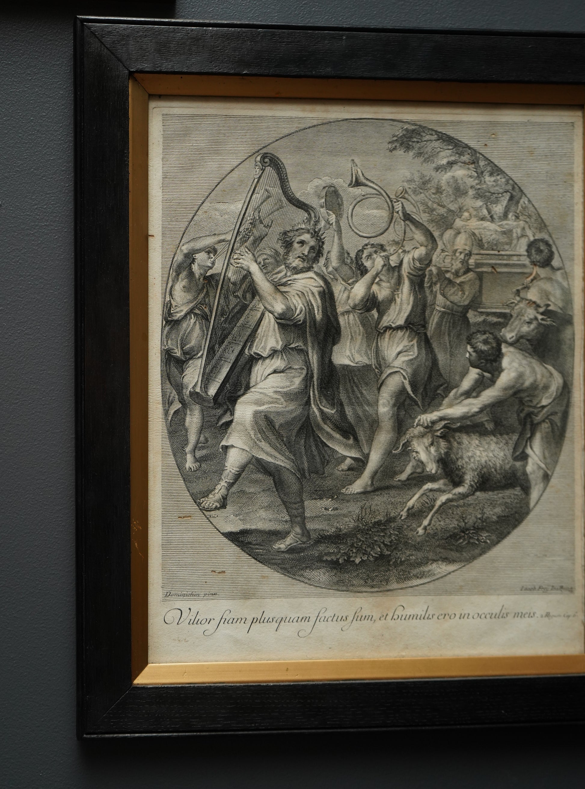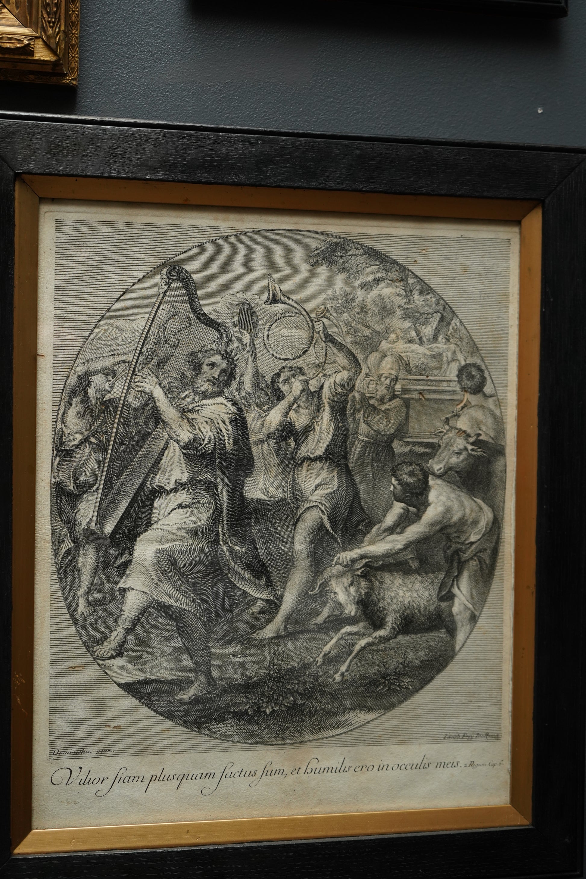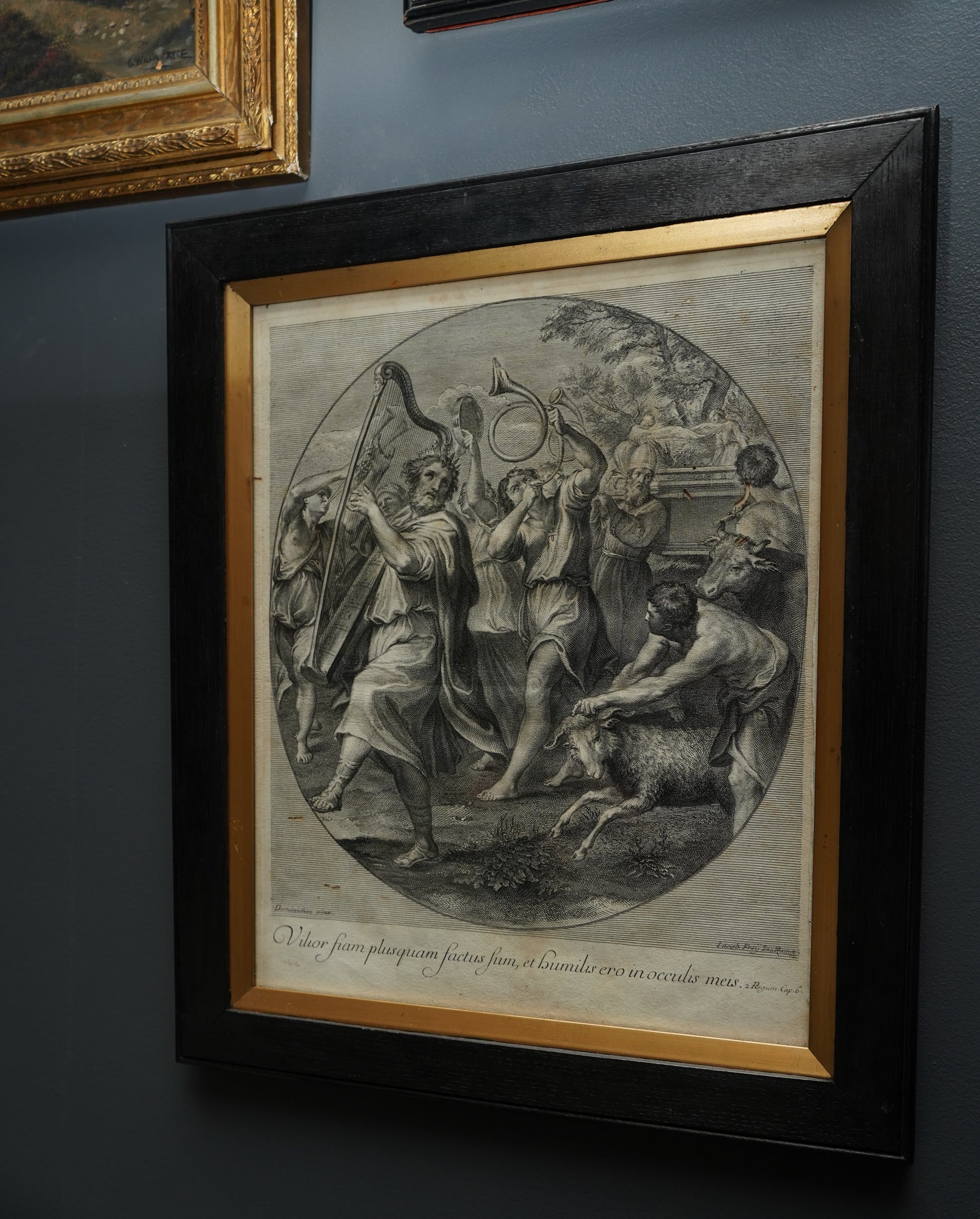 Johann Jakob Frey Engraving “The Triumph of David” after Domenichino | 18th-Century Biblical Print in Black Frame