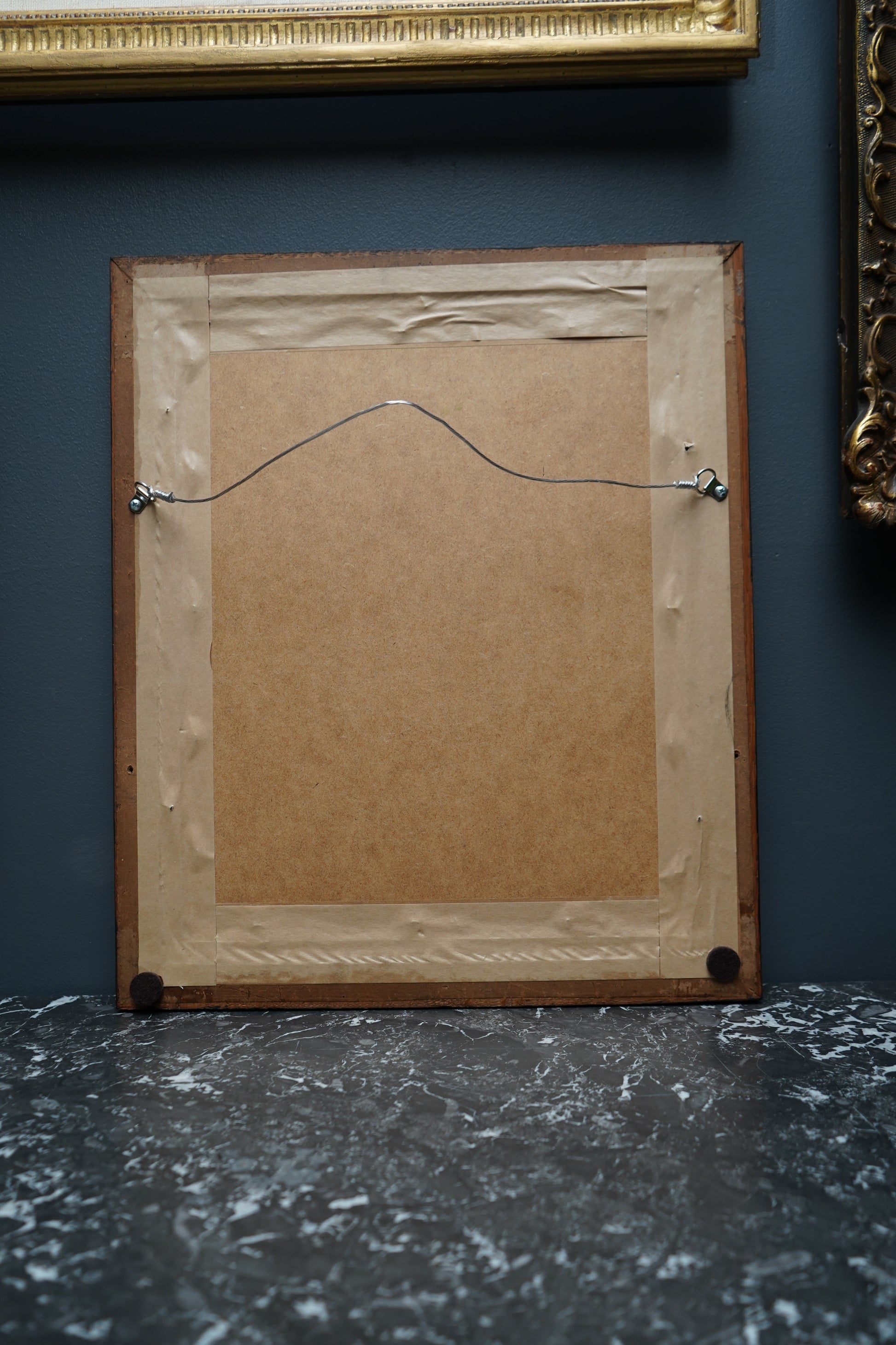 This late 18th-century impression shows signs of age, including cropping outside the plate lines, scattered foxing, and light discoloration. There are small historic bookworm holes at the upper right corner and left margin. Despite these issues, the image remains strong and the piece presents attractively in its black frame with gilt-effect slip.