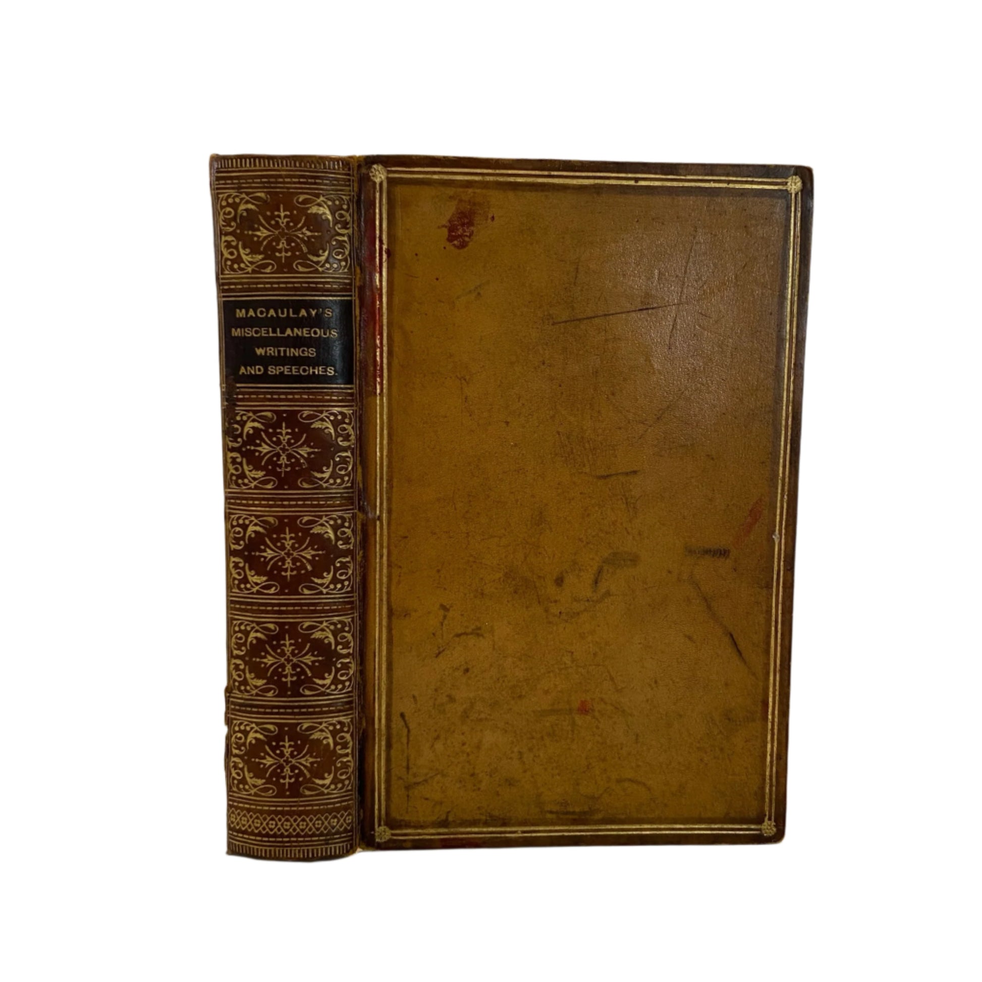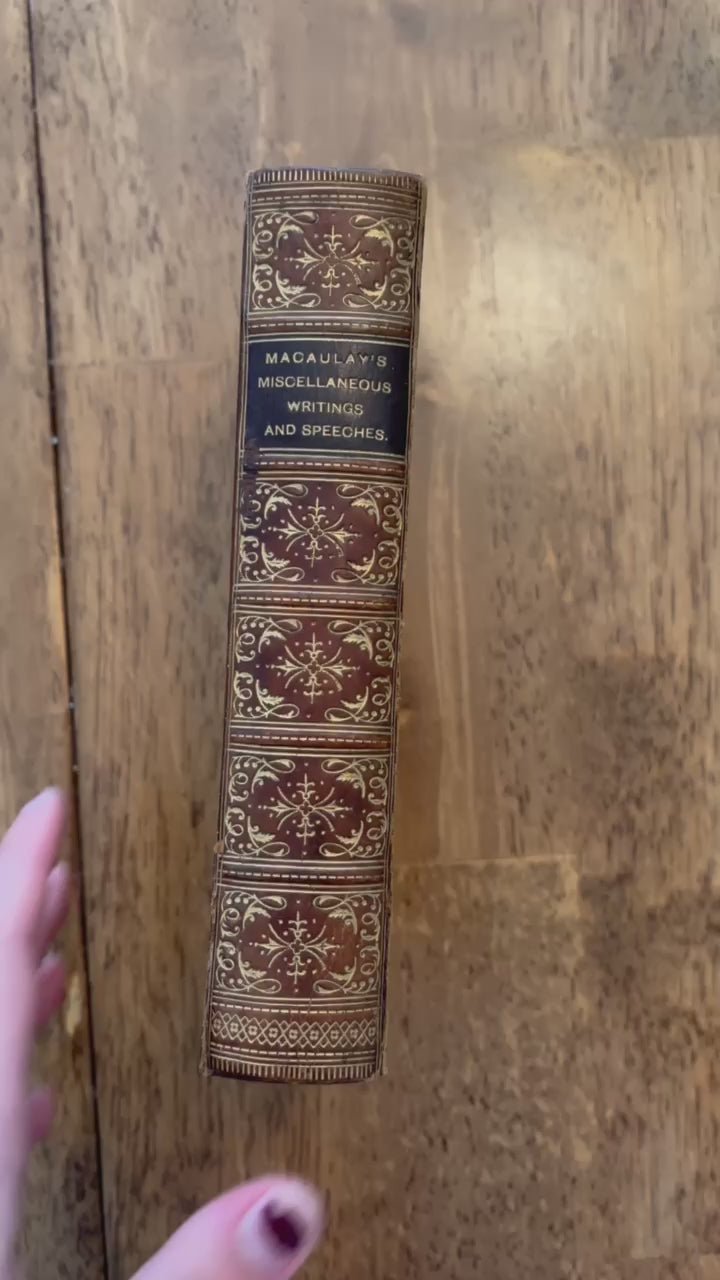 1889 "The Miscellaneous Writings and Speeches of Lord Macaulay" Full Caramel Brown Leather Book