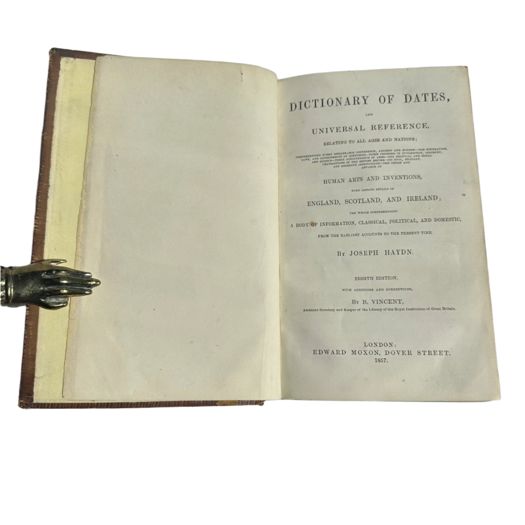 1857 "Haydn’s Dictionary of Dates and Universal Reference" Brown Full Leather Book