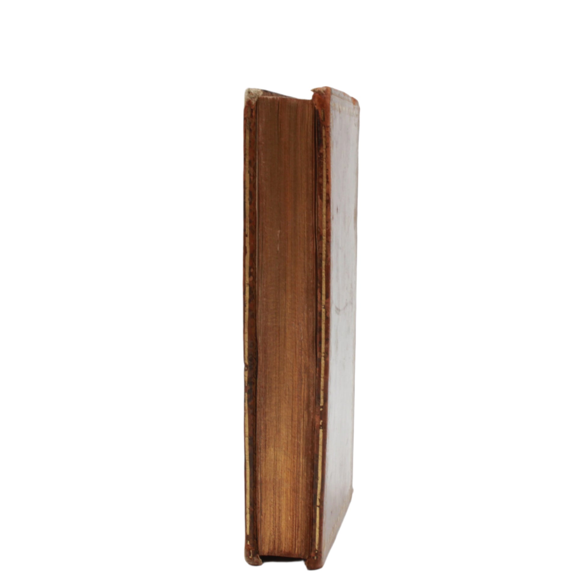 This early 1800s volume is in good condition for its age with expected wear to the binding. The calf leather cover shows some rubbing and flaking, especially to the joints and head of the spine where a small loss is present. Corners are softened and worn. The binding remains firm overall, with both boards still attached. The marbled endpapers are bright and intact, and the interior pages are complete with moderate foxing and age toning throughout. The silk ribbon marker is still attached, though it is fragile and partially frayed. Gilt page edges remain beautifully bright, and the engraved frontispiece is well preserved.