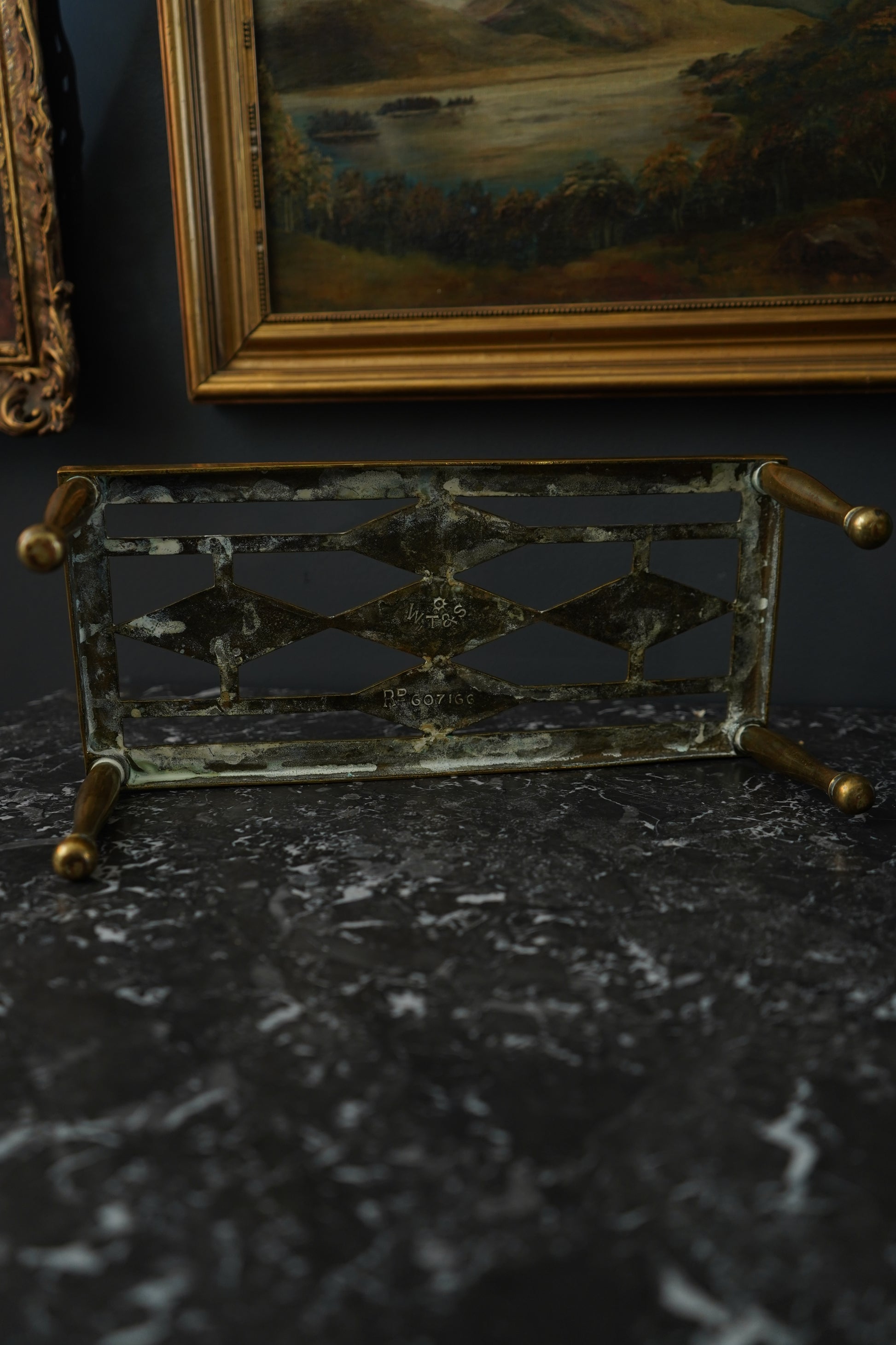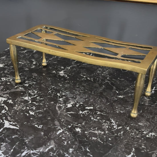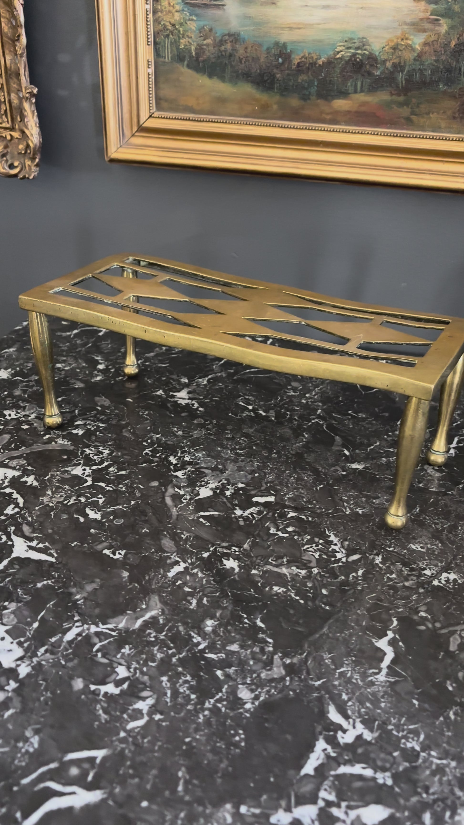 Antique Brass Footman Trivet Stool – Pierced Geometric Hearth Stand