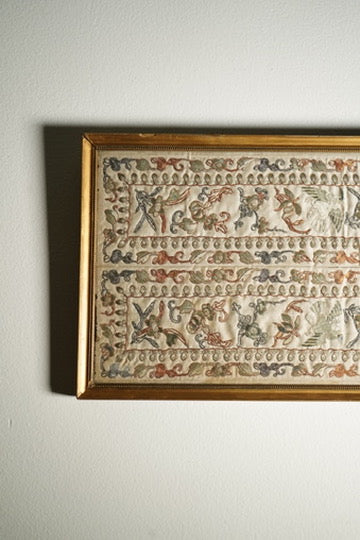 Antique European Chinoiserie Silk Embroidery on Satin