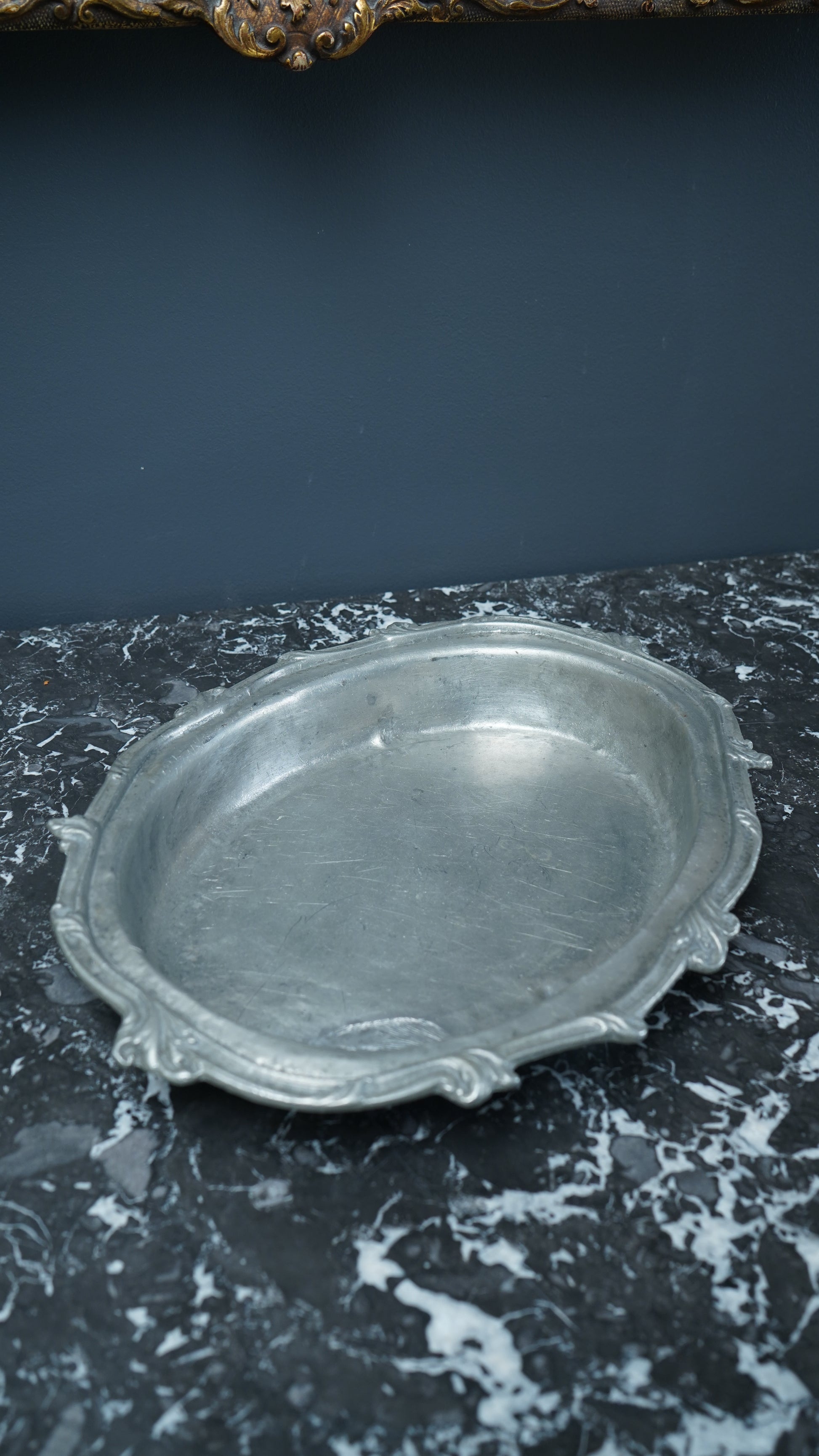 Antique European Pewter Dish with Crown & Fleur-de-Lis Hallmark
