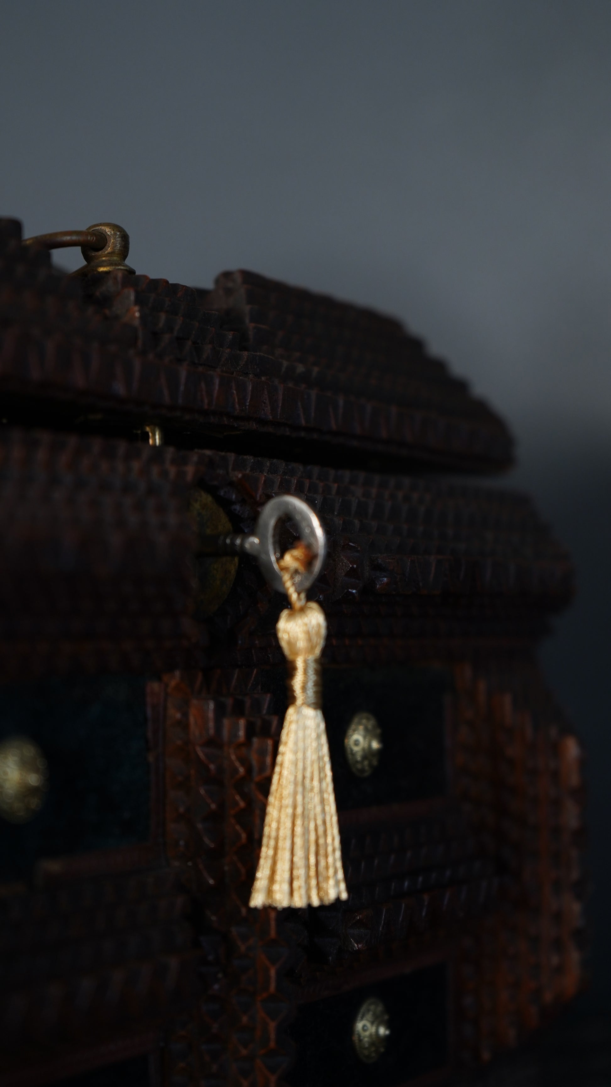 Material: Hand-carved softwood with paper, textile, and velvet details