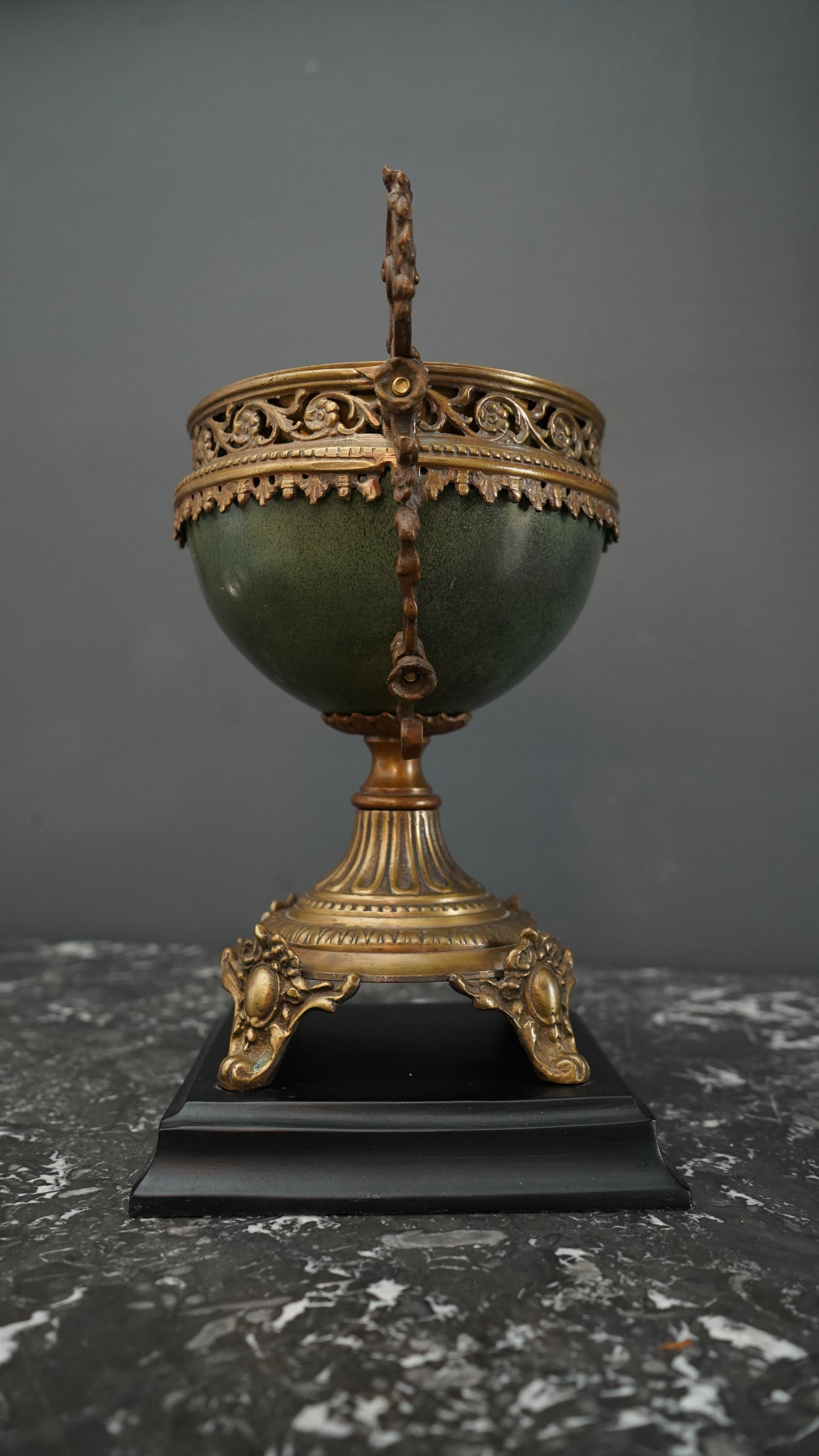 Vintage Neoclassical Decorative Urn with Faux Malachite Bowl and Gilt Metal Mounts