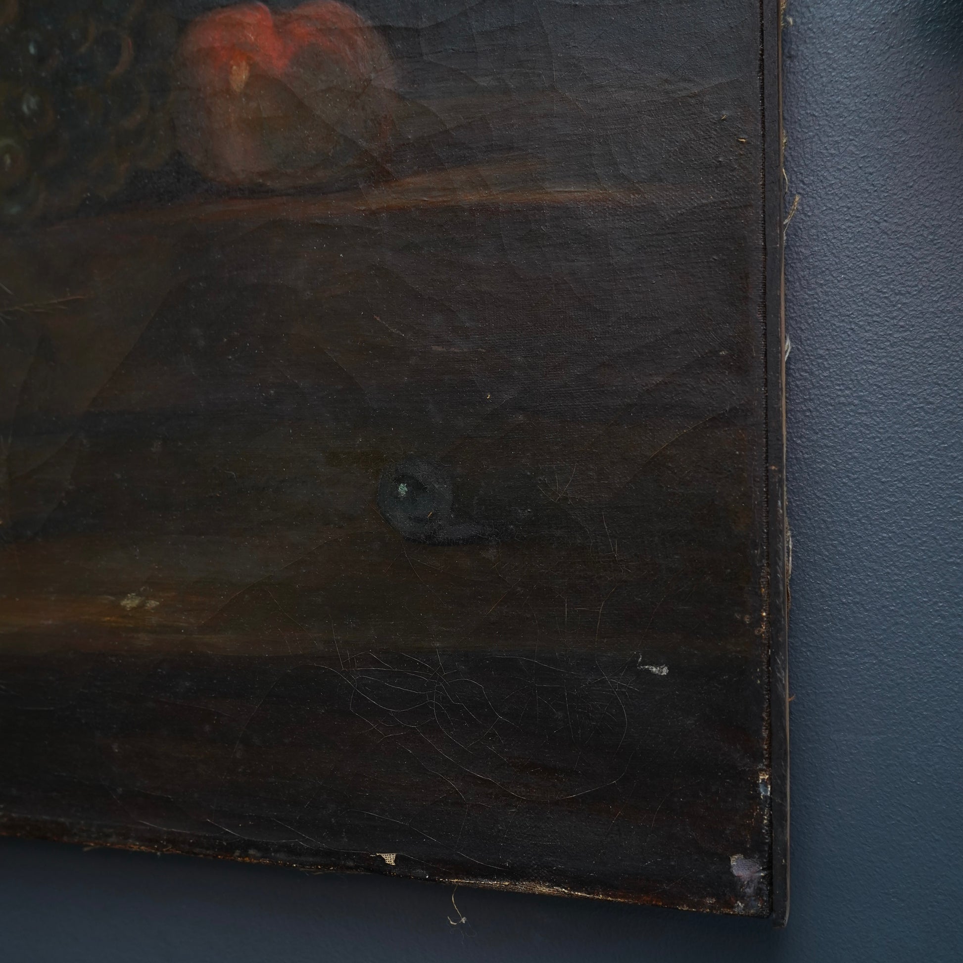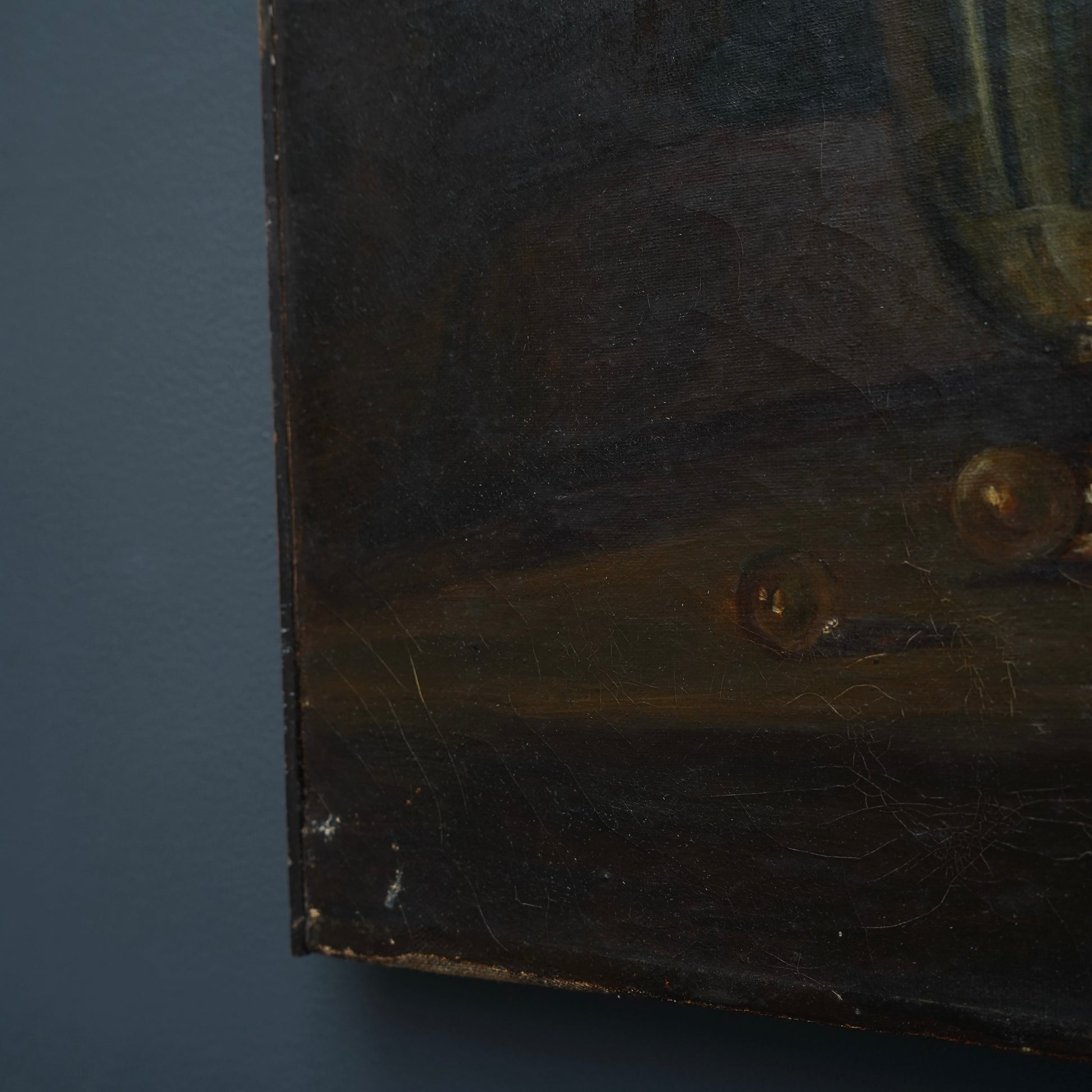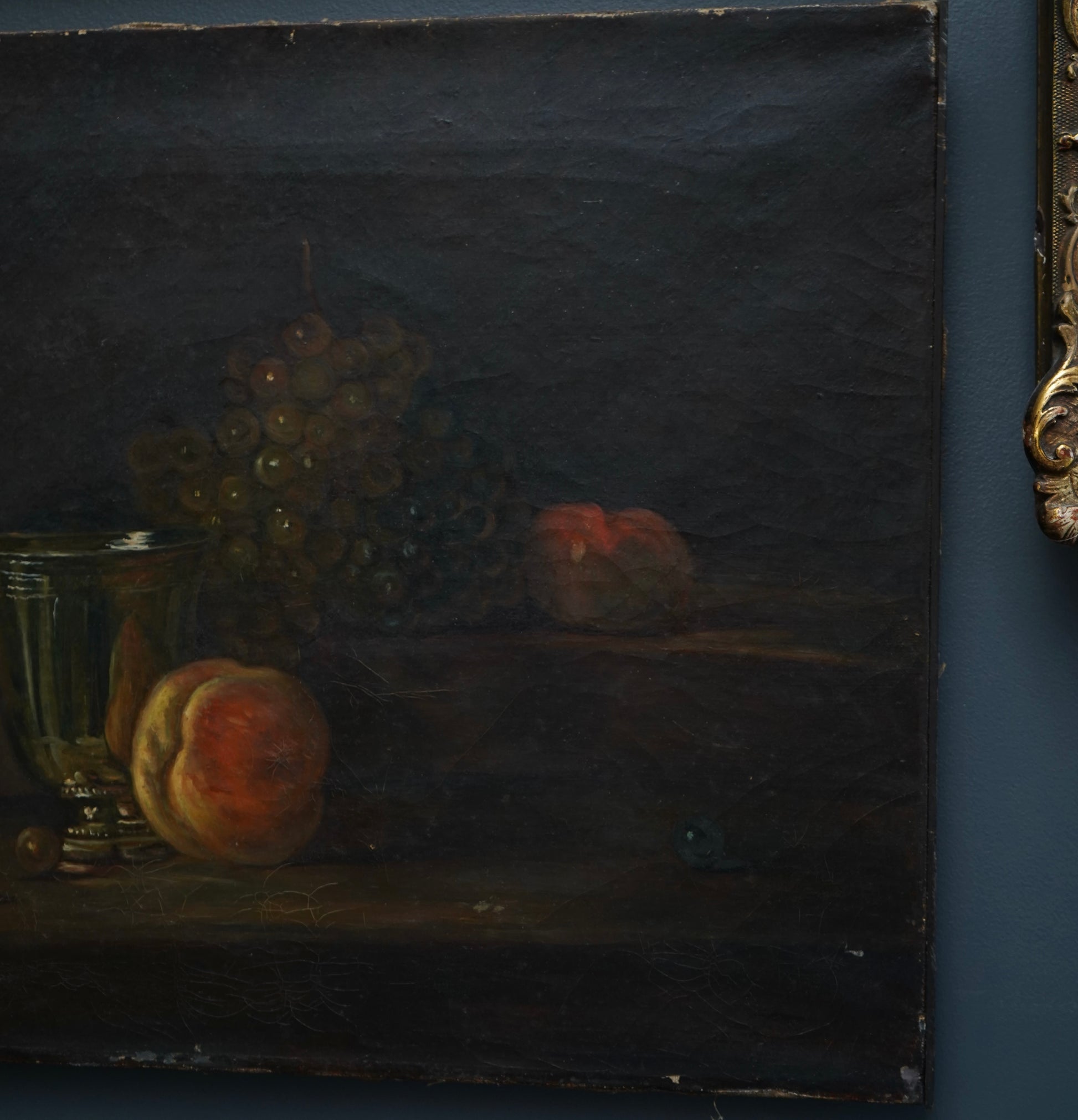 Early 20th Century Oil Painting After Chardin – Still Life with Silver Goblet, Peach & Grapes