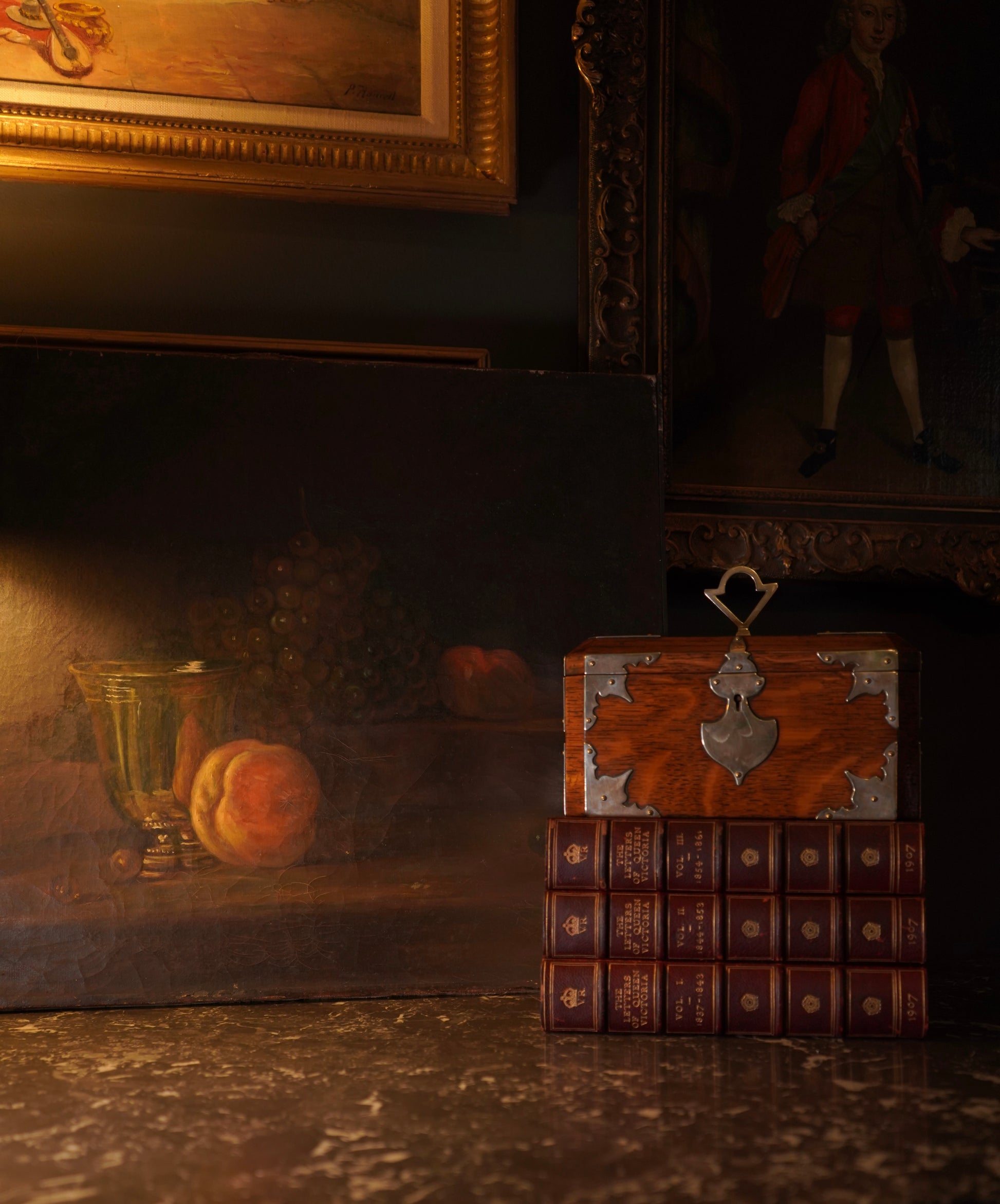The composition centers on a luminous silver goblet, accompanied by ripe peaches and a cluster of grapes - subjects Chardin returned to throughout his career. Set against a dark, restrained background, the fruit and glass glow softly in the foreground, capturing the master’s characteristic simplicity and refinement.