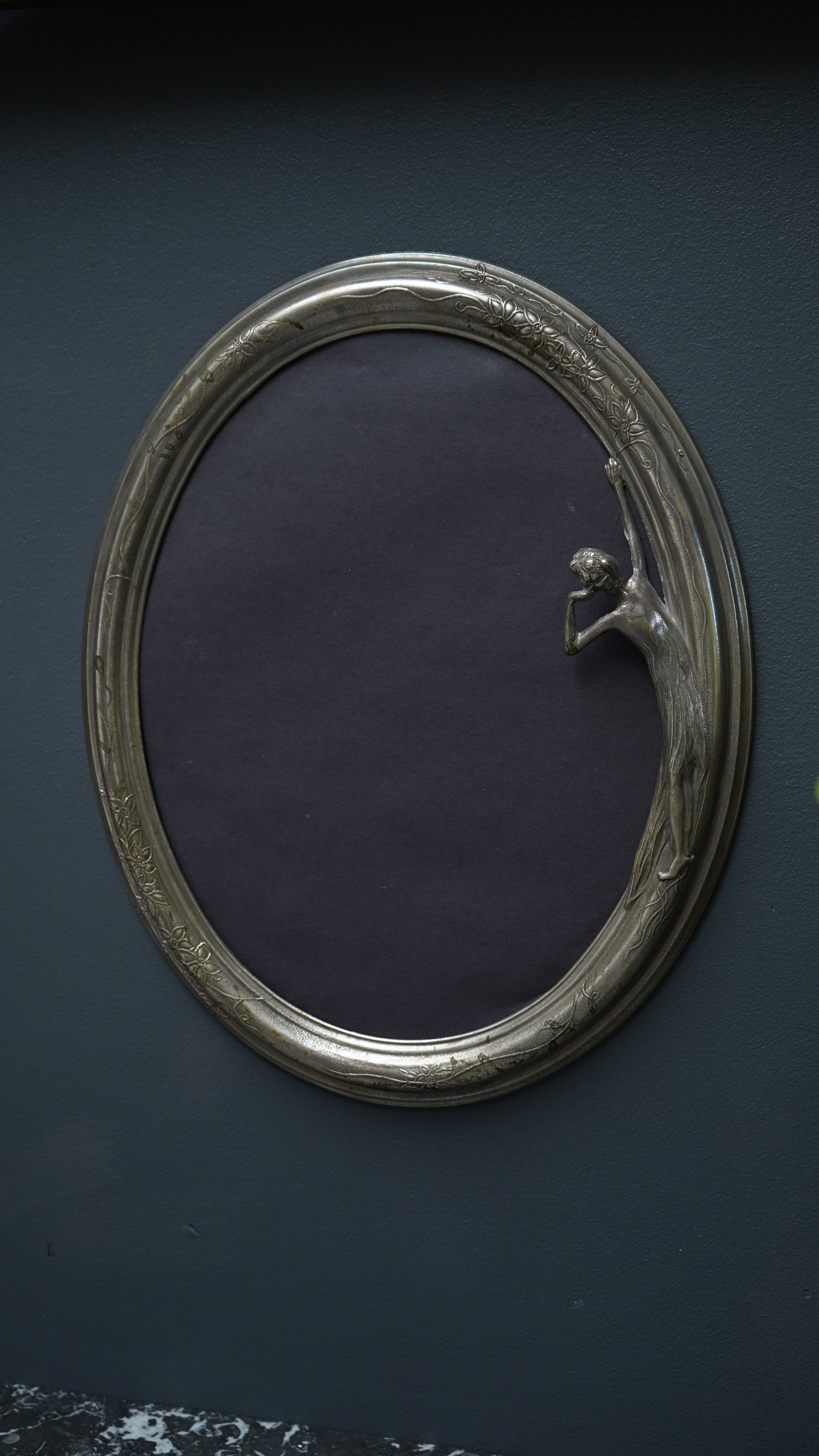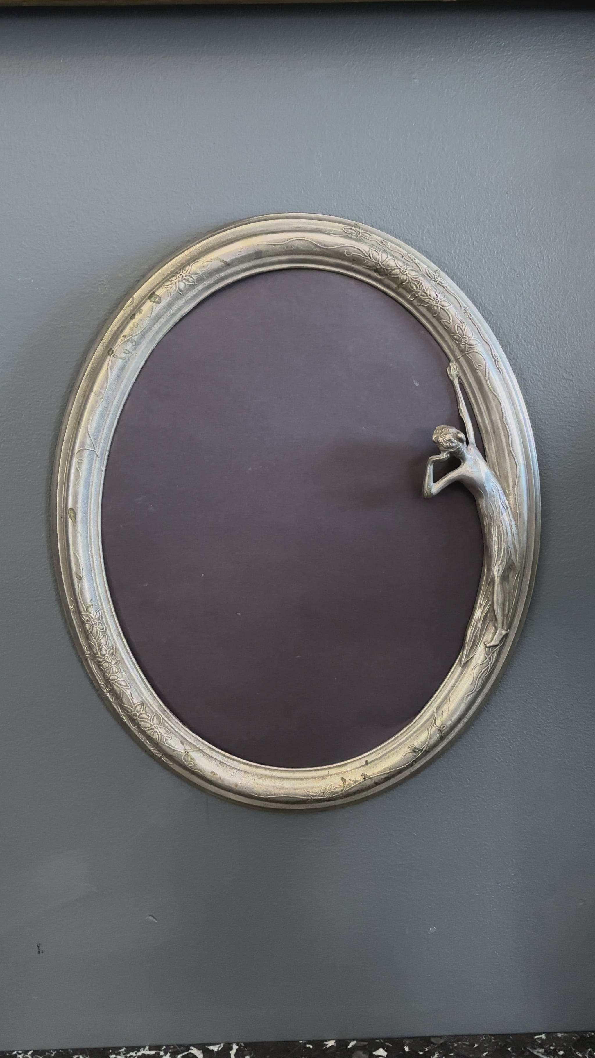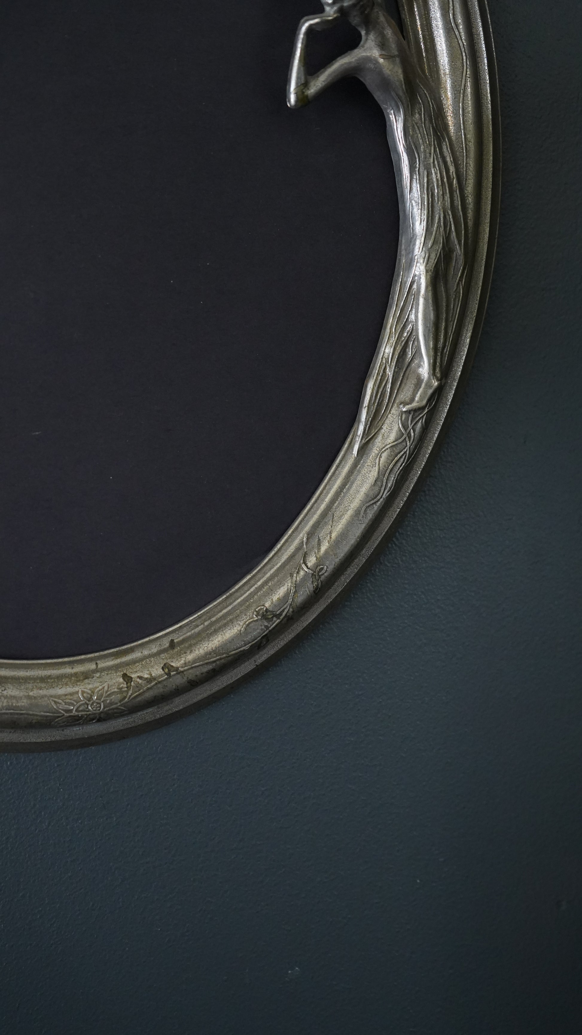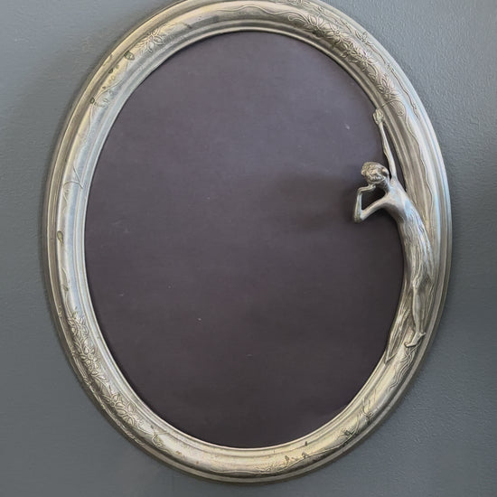 Art Nouveau Silver Plated Oval Frame with Lady and Floral Motif, Circa 1900