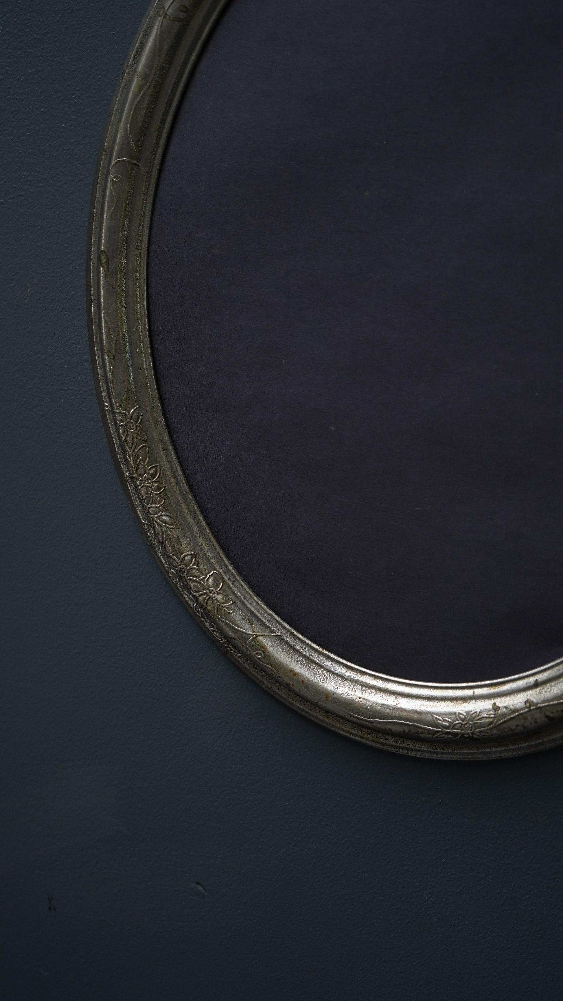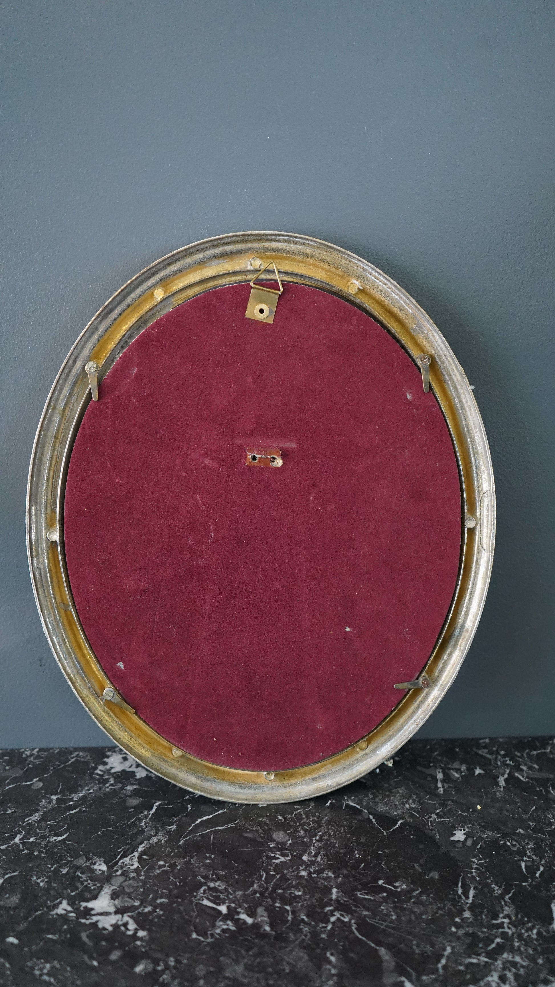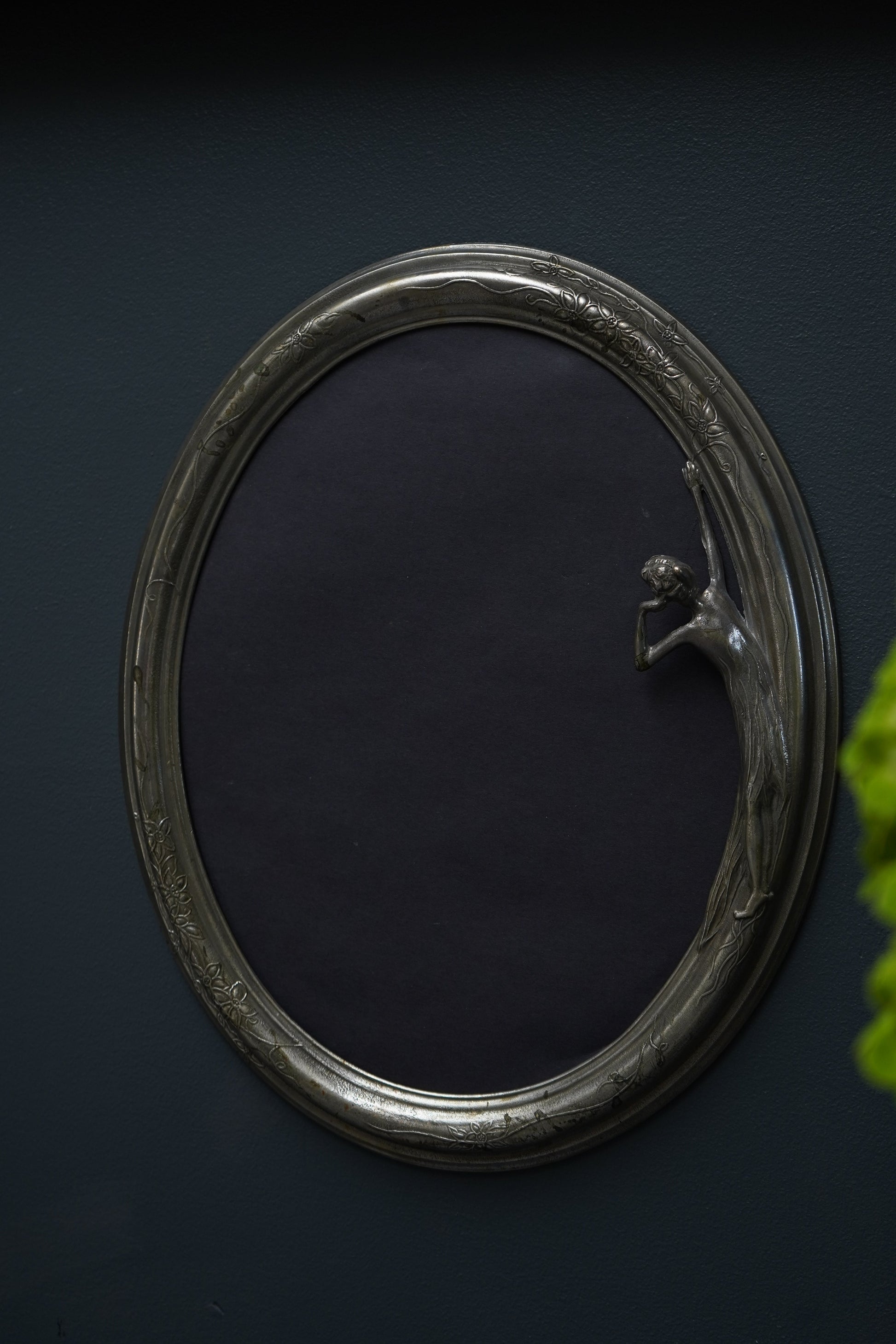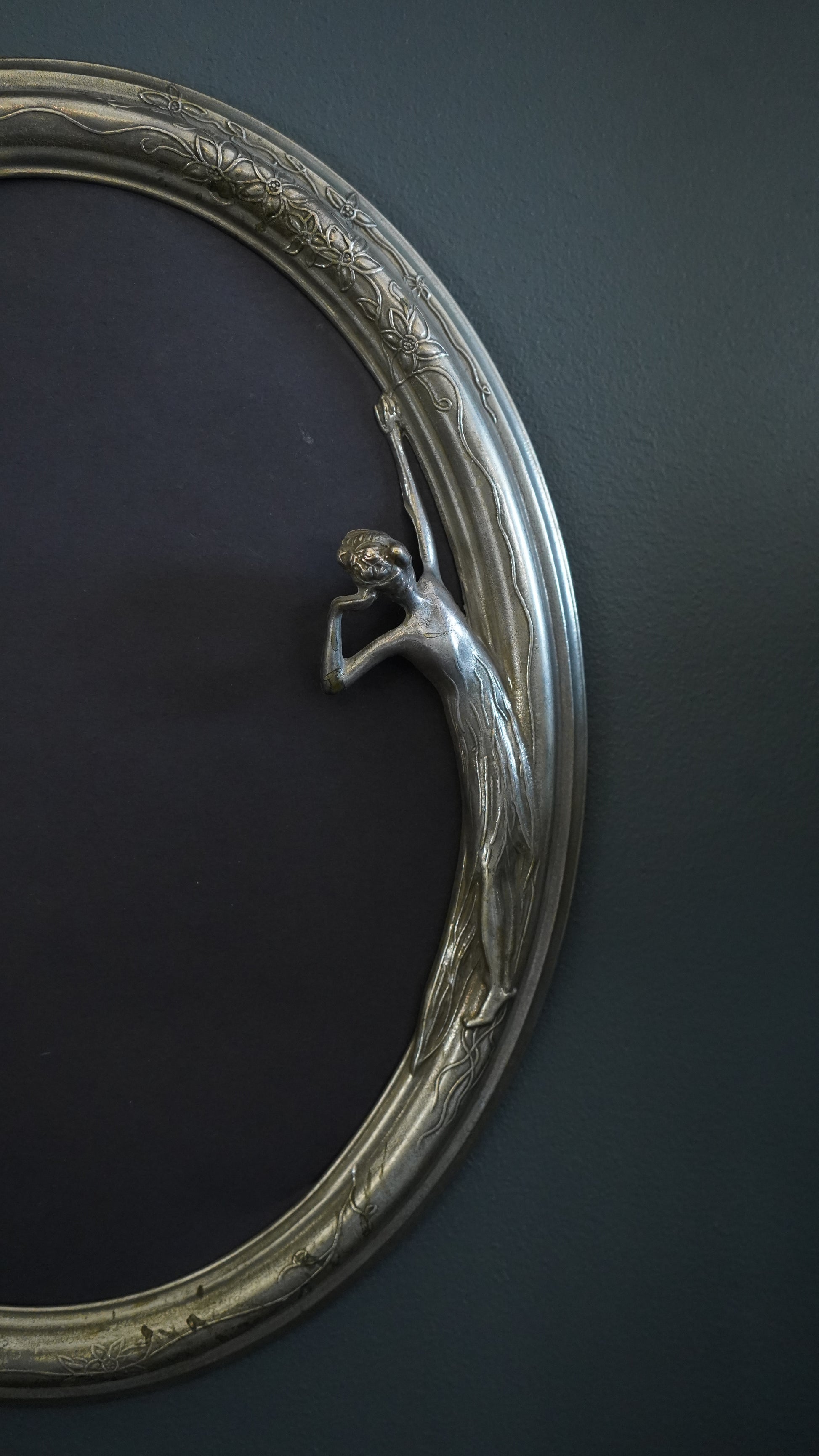 Art Nouveau Silver Plated Oval Frame with Lady and Floral Motif, Circa 1900