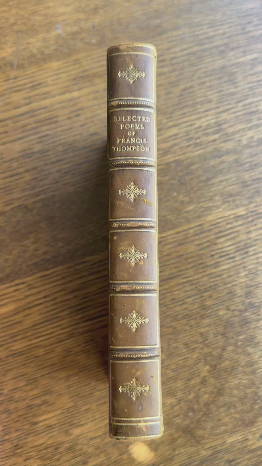 "Selected Poems of Francis Thompson" Faded Green / Brown Half Leather Book, Circa 1910-1925