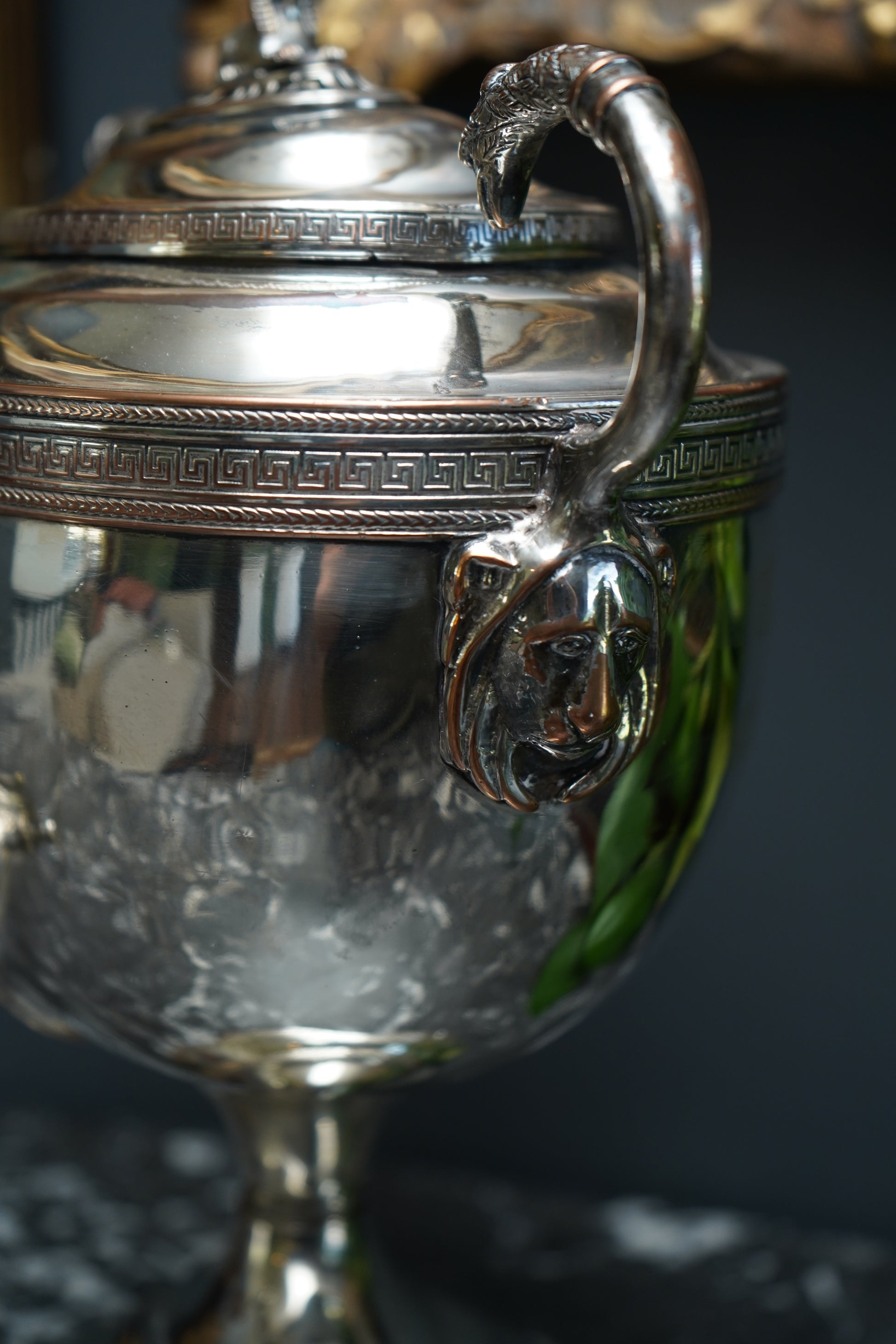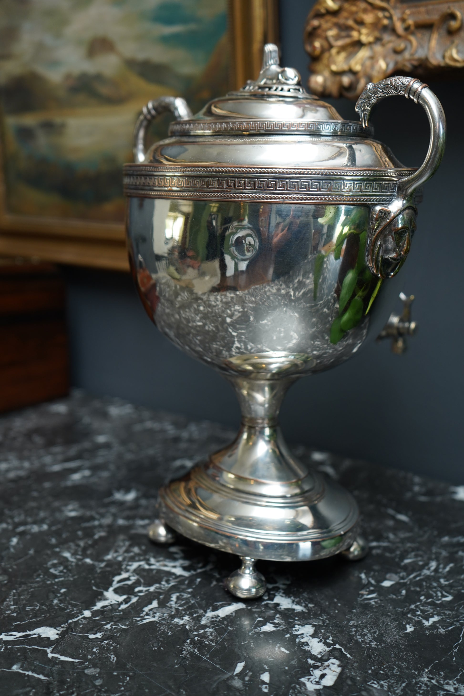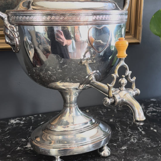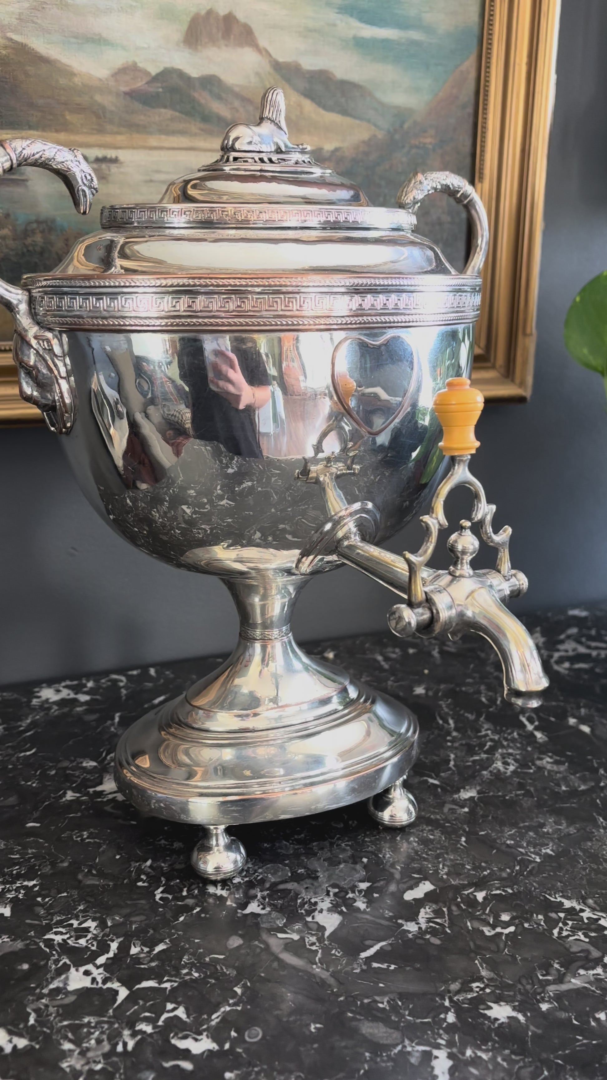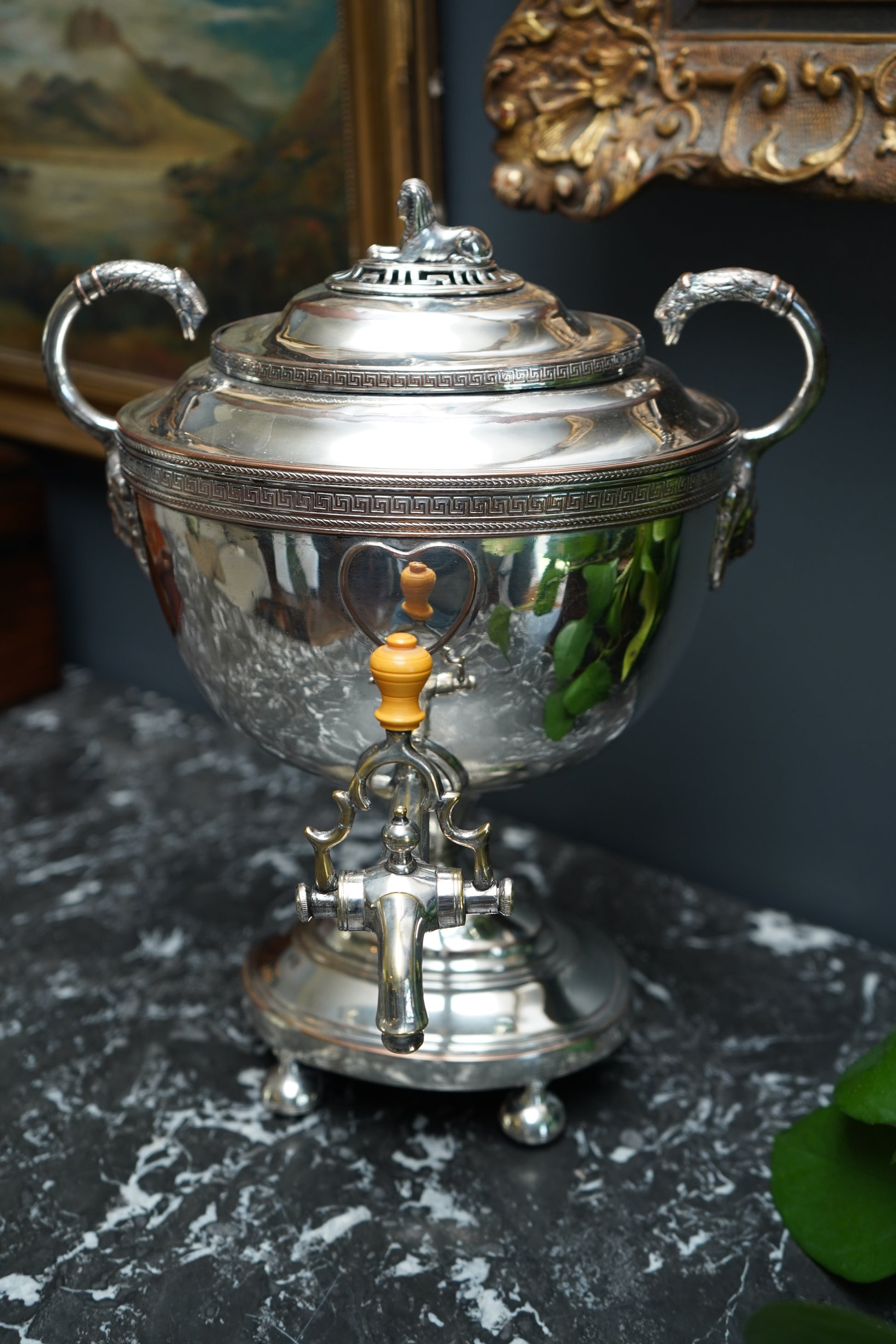Antique Silver Plated Samovar with Sphinx Finial and Lion Mask Handles | Victorian Tea Urn