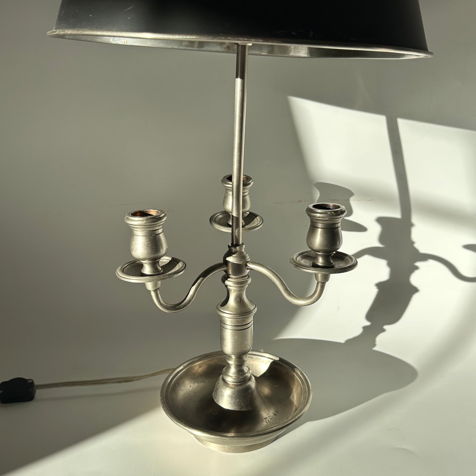 Bouillotte-Style Pewter Lamp with Adjustable Metal Shade & Dual Light Settings