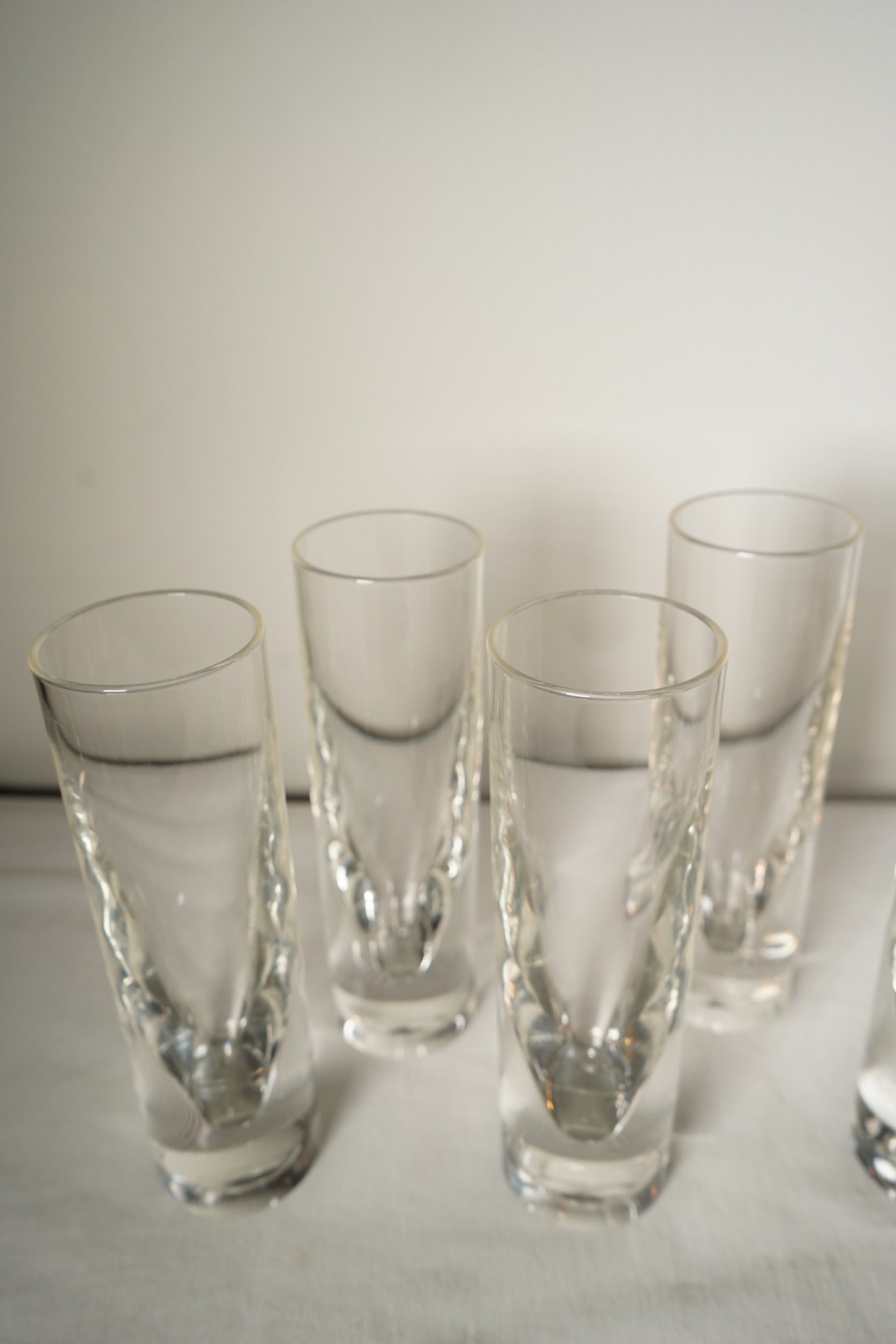 The set is in good vintage condition with visible small surface scratches throughout, which are typical for lucite pieces from this period. The bases show micro scuffing from use and storage. All six tumblers remain clear with no clouding or fogging, and the sculptural interior forms are crisp and defined. There are no cracks or structural concerns. They display beautifully and retain the clarity and presence expected from high quality 1970s acrylic barware.