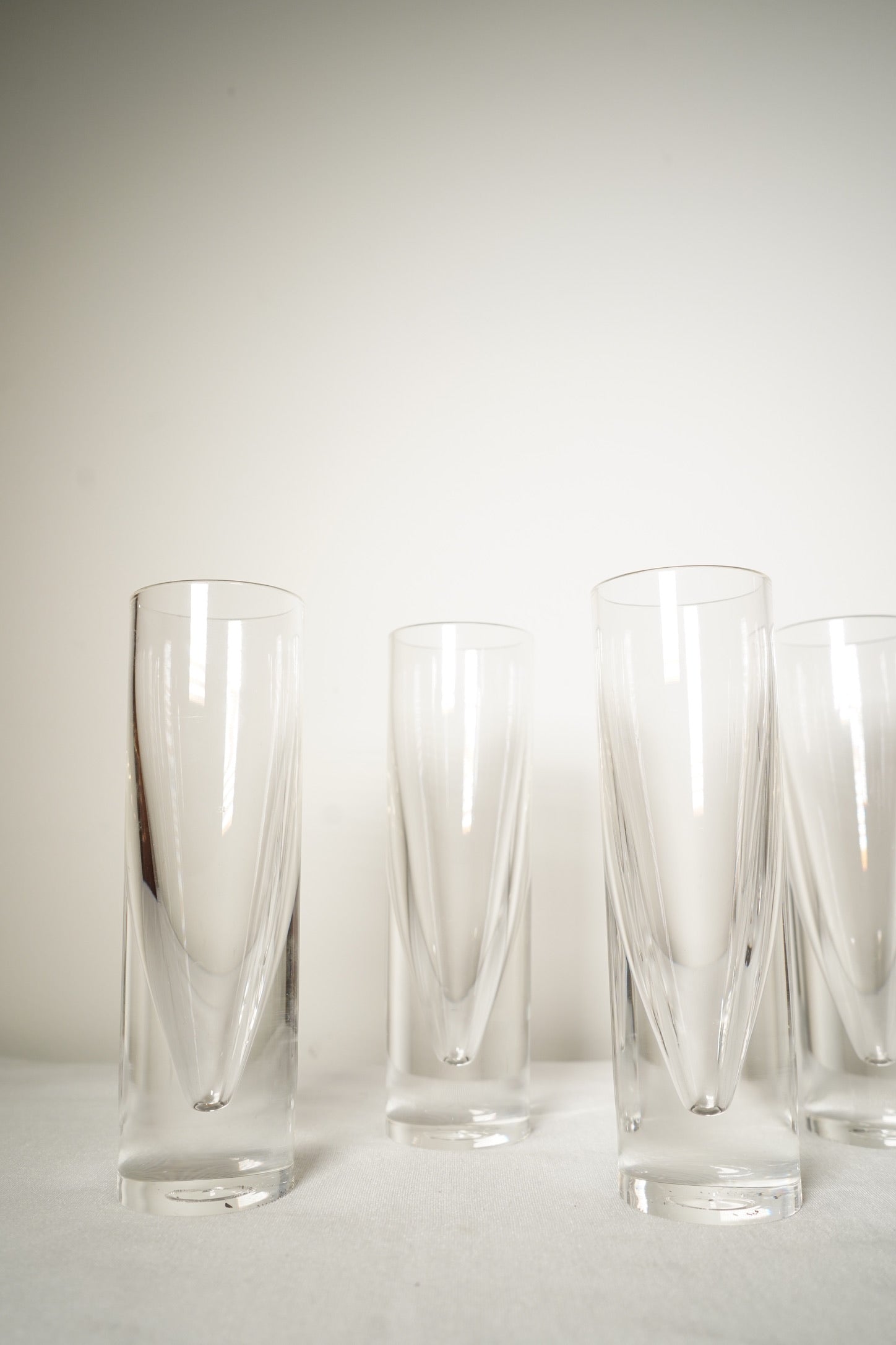 Lucite barware became a hallmark of sophisticated entertaining during the 1970s and 1980s. It offered the clarity of glass with a lighter weight and greater durability, making it ideal for indoor and outdoor use. These tumblers are a perfect example of that era's interest in futuristic materials and sculptural simplicity. They feel crisp, modern, and elegant while still reading as vintage. The seven inch height gives them a refined, elongated profile that works well for cocktails, sparkling water, and mixed drinks.
