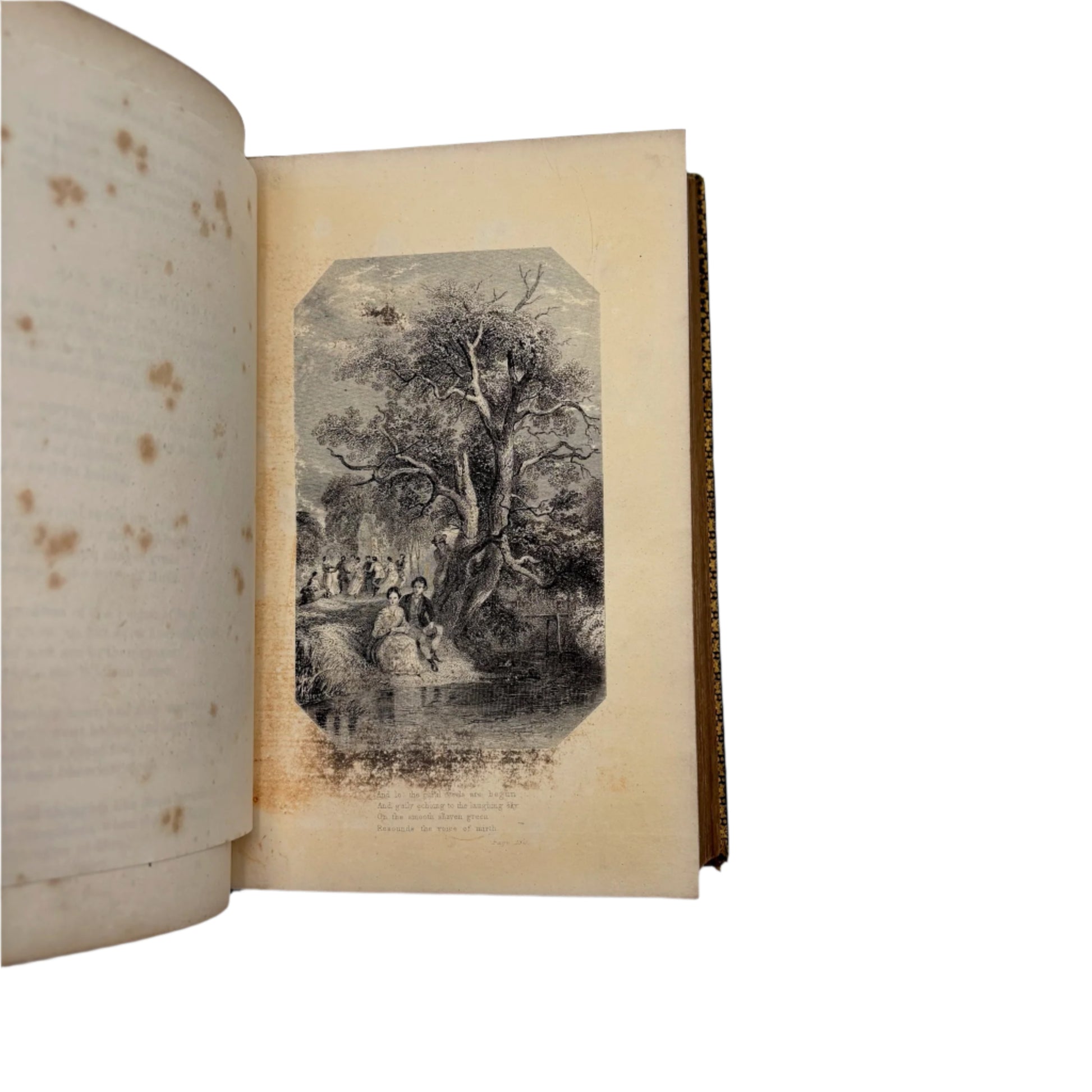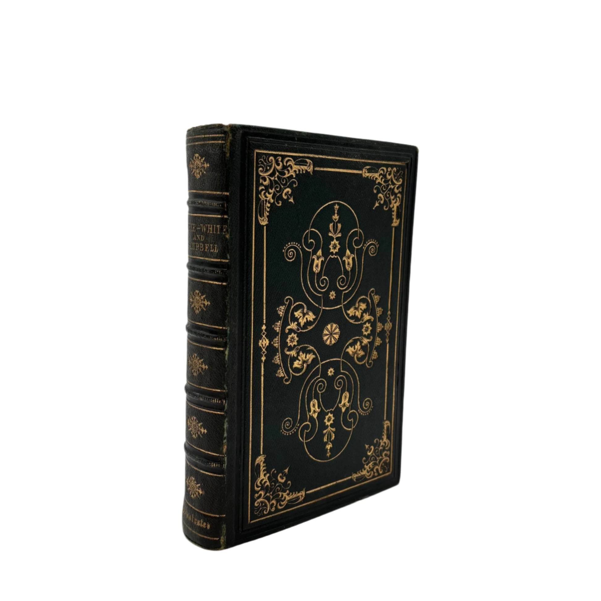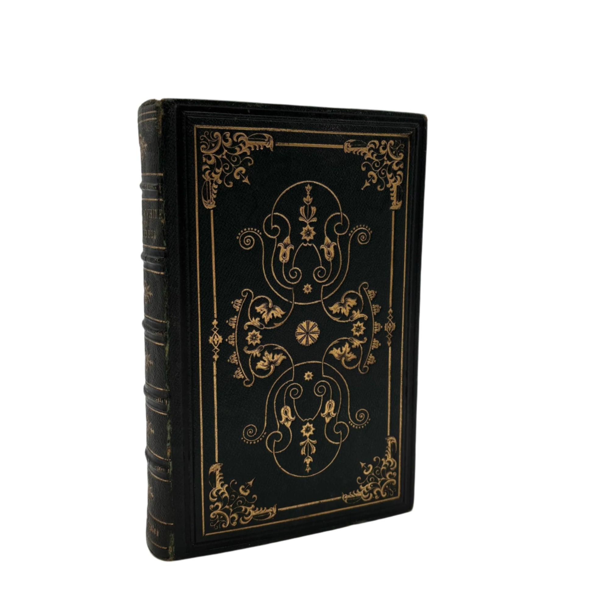 This 1855 edition features the poetical works and lives of John Kirke White and Thomas Campbell, two celebrated poets of the era. Bound in rich dark green leather with detailed gold embossing, it combines biography, poetry, and engraved illustrations. Kirke White’s reflective poems on youth and nature sit alongside Campbell’s stirring verses on hope and social progress. Designed as both a beautiful keepsake and a thoughtful read, this book captures Victorian tastes for elegant, meaningful literature.