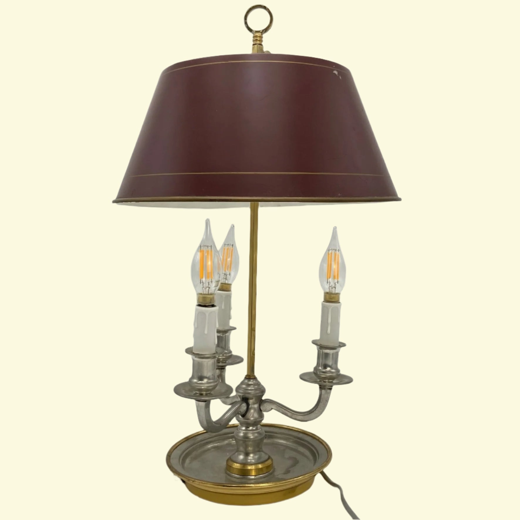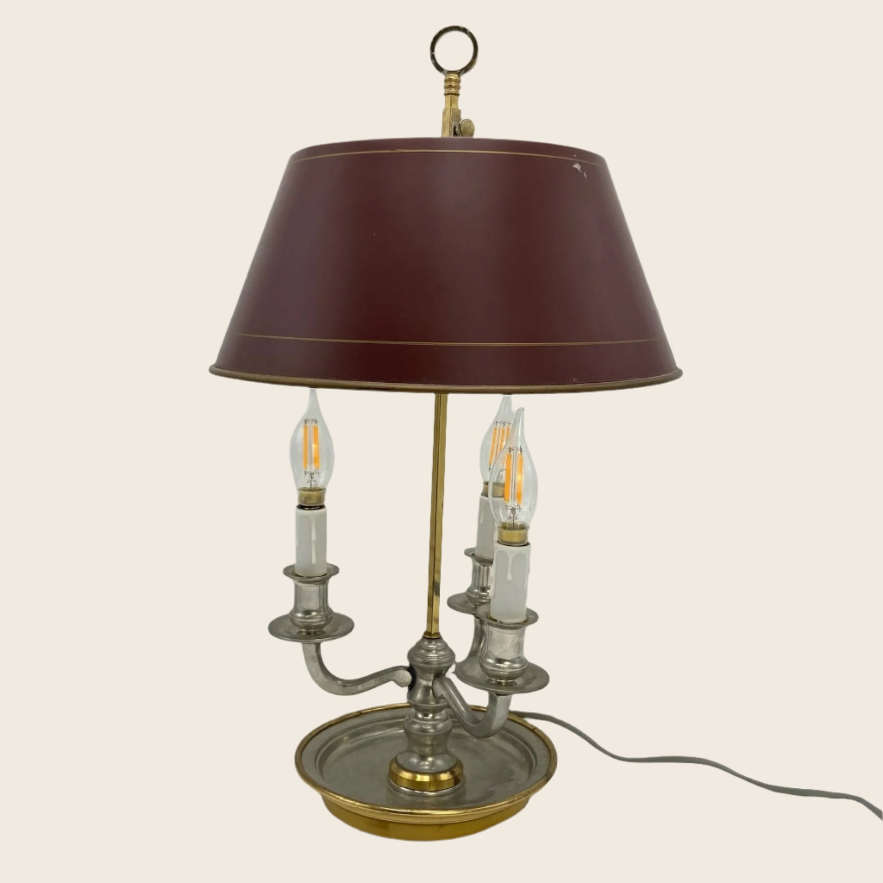Vintage French Bouillotte Lamp with Maroon Metal Shade