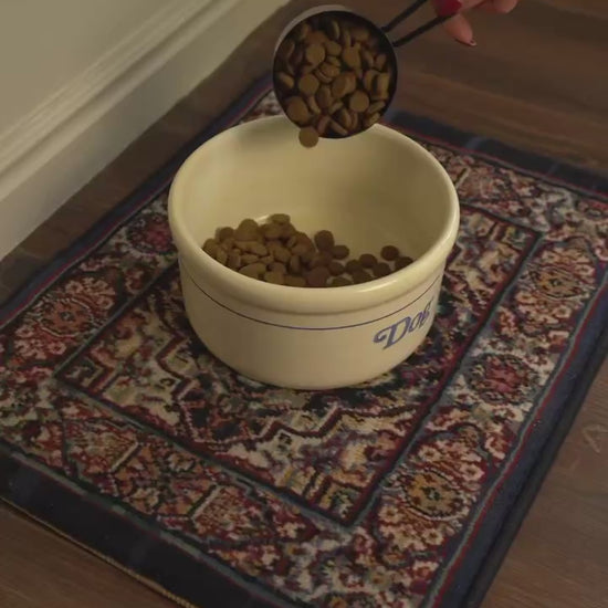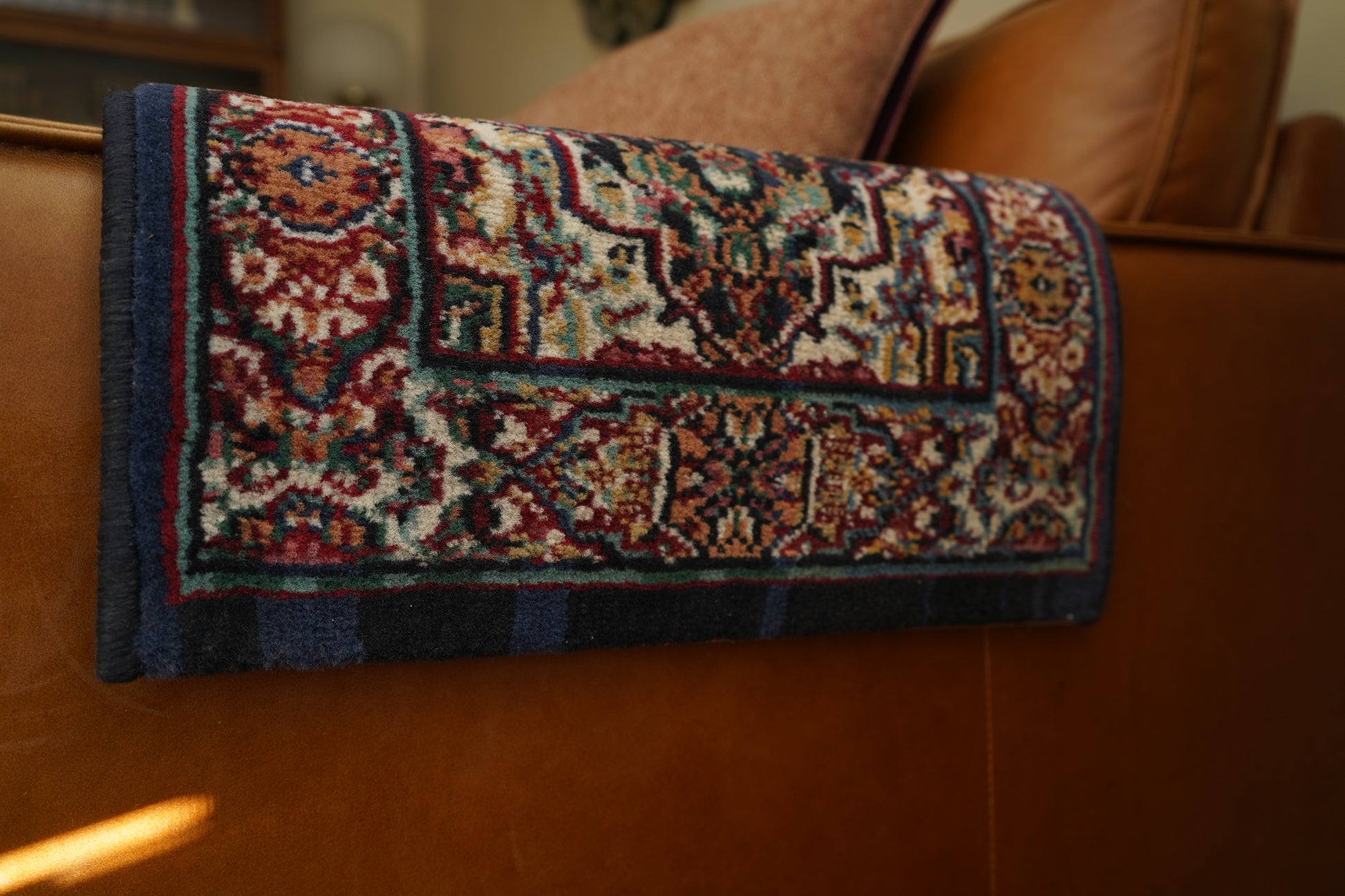 Vacuum lightly without a beater bar. Blot spills promptly with a wool safe solution. Use a thin pad or shelf liner if styling on a slick surface.